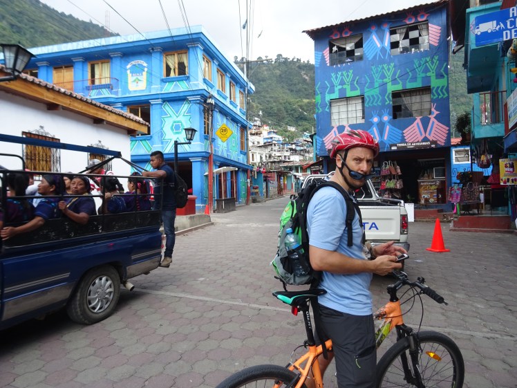 Panajachel ist sehr touristisch und alle wollen dir etwas verkaufen. Der Hunger treibt uns in ein Restaurant, in dem die Einheimischen sitzen. Wir bestellen Bier, Fisch und Hühnchen. Als das Bier vor mir abgestellt wird, drehen sich die Guatemaltekinnen zu mir um und warten mit offenen Mündern. Bei meinem ersten Schluck aus der Flasche kichern sie, aber winken mir trotzdem zum Abschied zu. Ich habe mir Fisch bestellt… Wo ist mein Kollege Stephan, wenn ich ihn brauche, der Fisch kommt mit Kopf, Schwanz und allem. Ich nerve den Wirt und er schneidet lieblos daran rum, Kopf und Schwanz sind immer noch dran. Augen zu und durch, ich seziere meinen ersten Fisch. Lecker, geht doch, bei Hühnchen werde ich das wohl nie können.