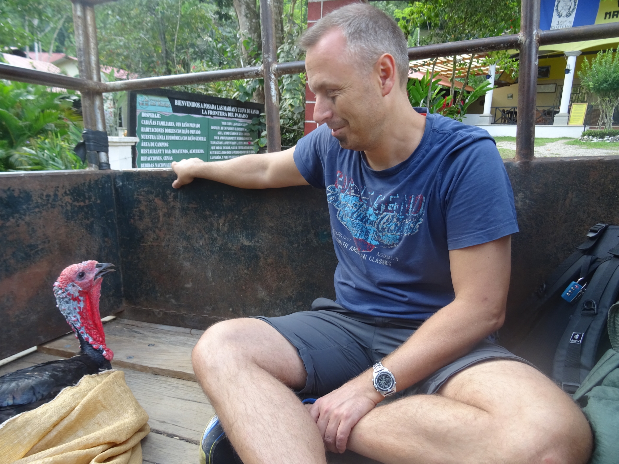 Auf der Rückfahrt springen wir wie üblich auf die Ladefläche, ein Mann reicht mir vorsichtig einen schweren Sack, den ich in der Ecke platziere. Unsere Hostelbesitzerin Melissa steigt dazu und Marcus meint in dem Moment, der Sack hat sich bewegt. Melissa öffnet ein Stück vom Sack und zum Vorschein kommt der Kopf eines Truthahns. Er hat umgerechnet 60 € gekostet und muss doch irgendwann dran glauben.