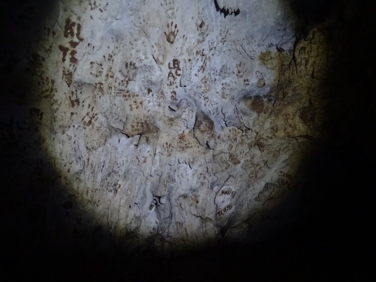 Unser Guide Marco scheint wenig vertrauenserweckend, er fotografiert mit seinem Handy die Karte ab, schließt die Augen und geht im Kopf die Gänge durch, indem er sich kurz in die verschiedenen Richtungen dreht. Nur mit Helm und integrierter Helmlampe geht’s los. Stockdunkel wird es, die Fledermäuse fliegen genervt vor uns in der Höhle rum.