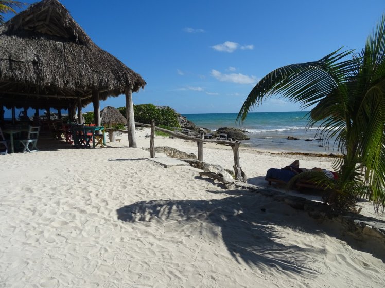 Das ist natürlich Quatsch… Zuerst tauschen wir mal wieder unser Zimmer, denn trotz der schönen Aufmachung hat es doch ganz schön modrig schimmelig gerochen. Mit dem neuen Zimmer bin ich sehr zufrieden. Wir mieten uns Fahrräder oder besser gesagt unbequeme Beachcruiser mit Rücktritt und fahren zum Tulum Tower.