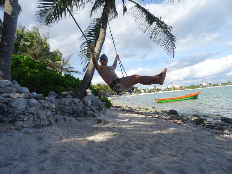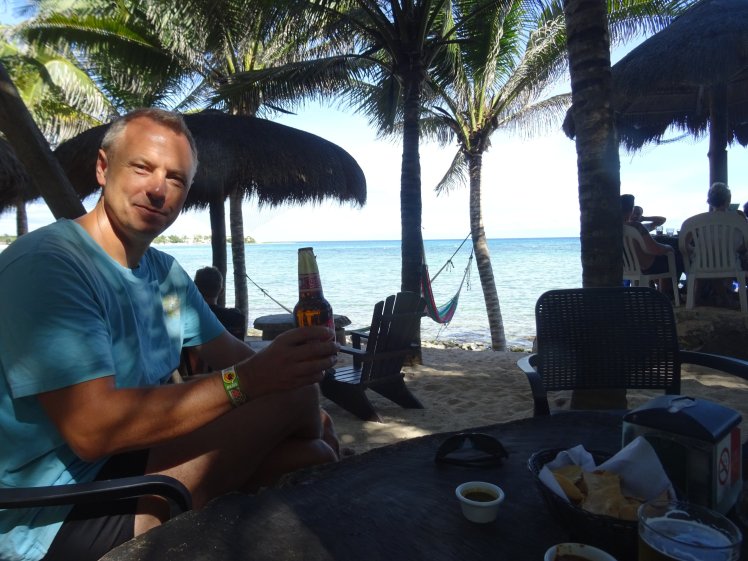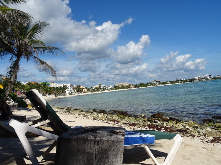 Akumal wurde zum Nationalpark erklärt und der Strandzugang kostet Eintritt. Ohne einen Guide darf man nur noch einen winzigen Teil im Meer betreten. Kajaks patrollieren rund um den geschützten Bereich und pfeifen jeden Übertretungsversuch knallhart zurück. Wir versuchen erst gar nicht, dass in unseren Köpfen bezaubernde Akumal durch die neue reale Situation zu ersetzen und verkrümeln uns zur Nachbarbucht Halfmoonbay