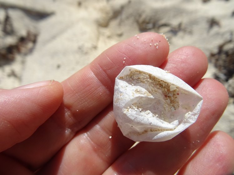 denn wenn man genau hinschaut, sieht man die eingetrockneten Eihüllen im Sand liegen.