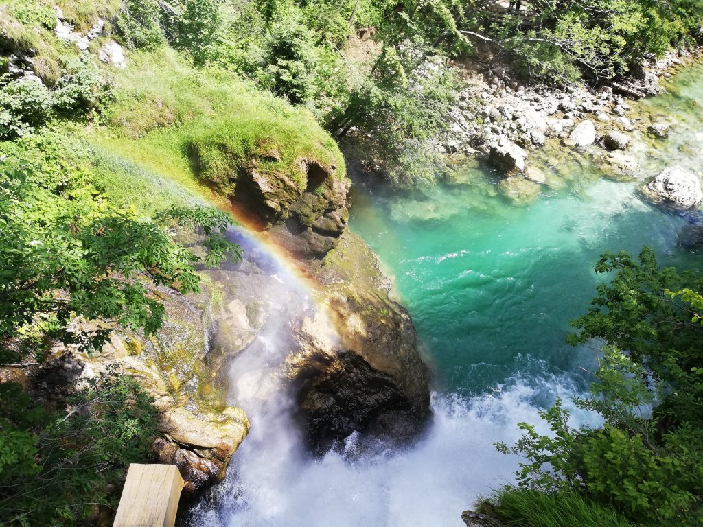 Für Gehfaule kann sich für 7 Euro zum Schluchteingang fahren lassen und der Preis scheint sich ständig zu erhöhen, denn er wird immer wieder mit neuen Zahlen überklebt. Wir gehen natürlich die Strecke und sind dann in der Must See Attraktion Sloweniens.