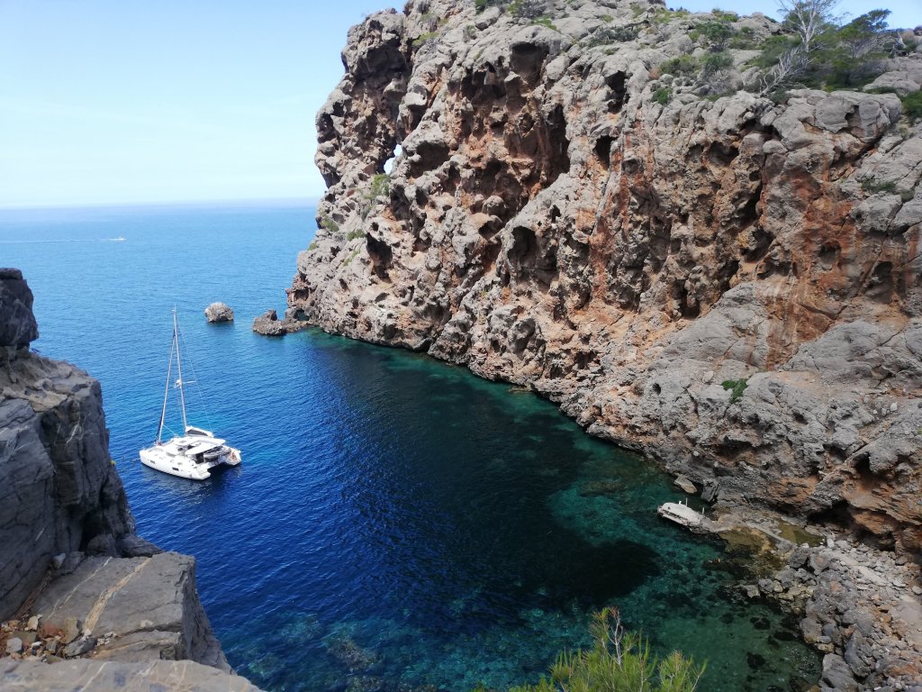 Um den Felsen näher zu kommen muss man… na zumindest nicht mit dem Auto fahren. Eine Stunde dauert der Weg in Serpentinen runter und wir sind fast allein dort unten bis auf die ankernden Jachten und die nervende Drohne über uns.