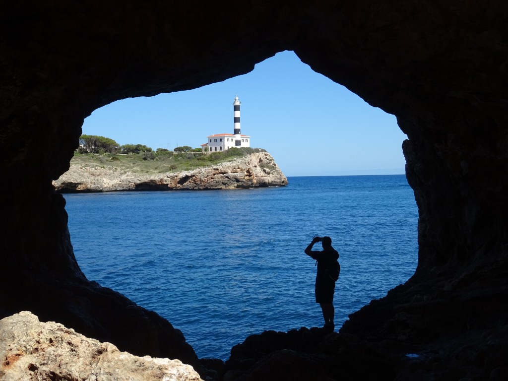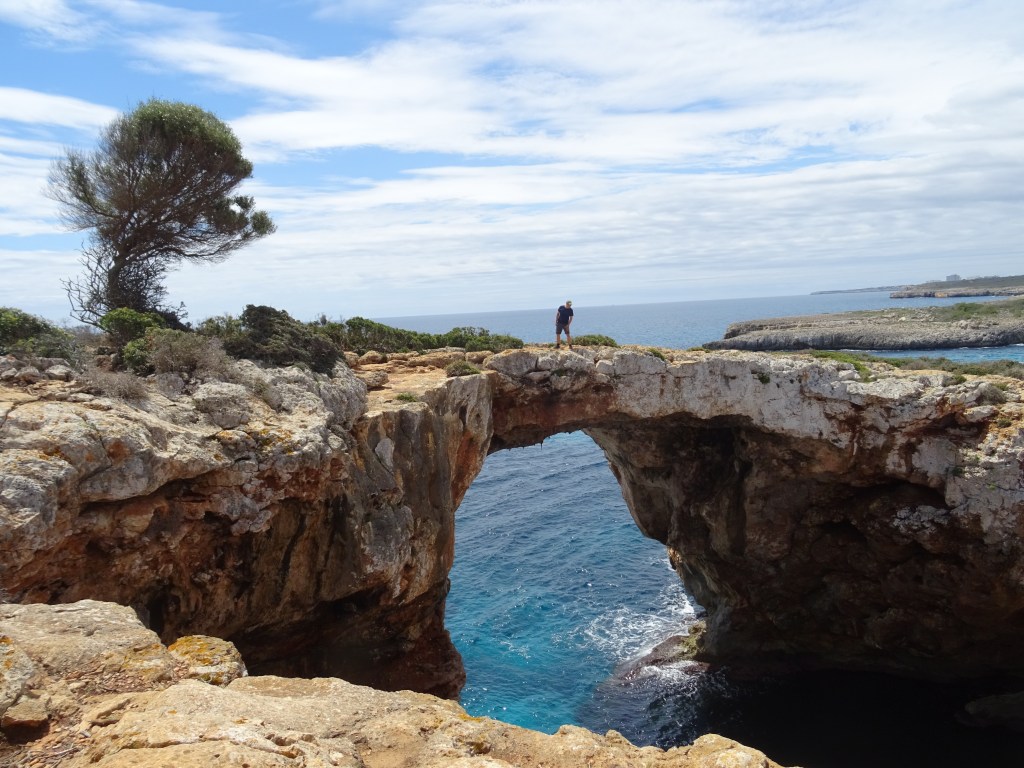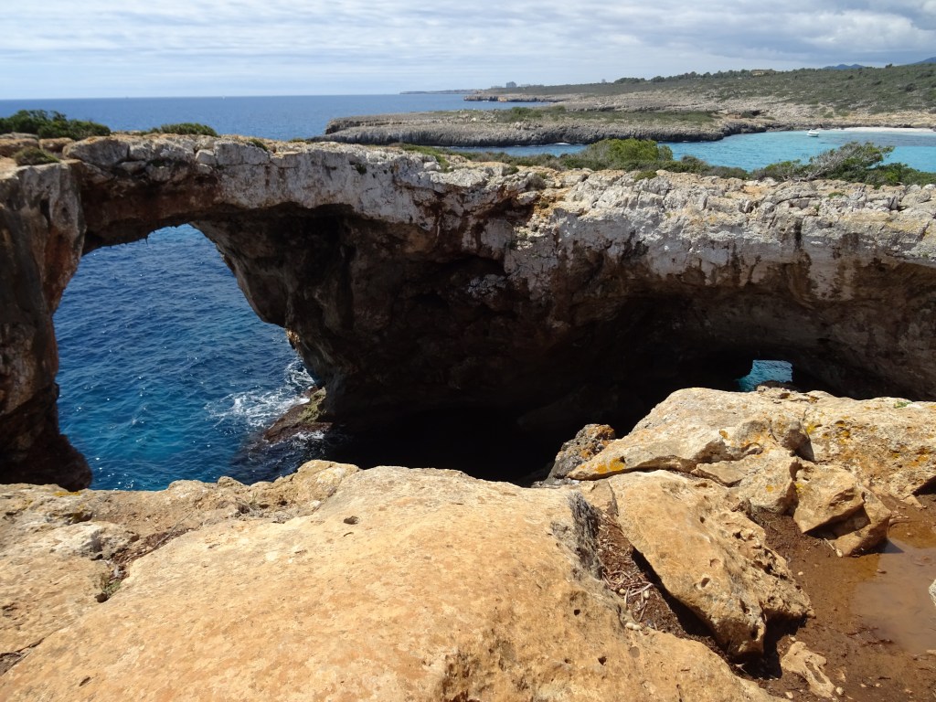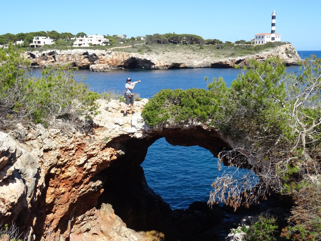Eigentlich hätte der Tag mit dem Abschlussbier an der Cala Romantica doch mehr geboten als man erwarten konnte und dann fährt mich Marcus zum nächsten Fotostopp nach Portocolom. Dort gibt es auch eine Natursteinbrücke und bei dem richtigen Winkel kann man sogar den Cap Leuchtturm mit aufs Foto bekommen,