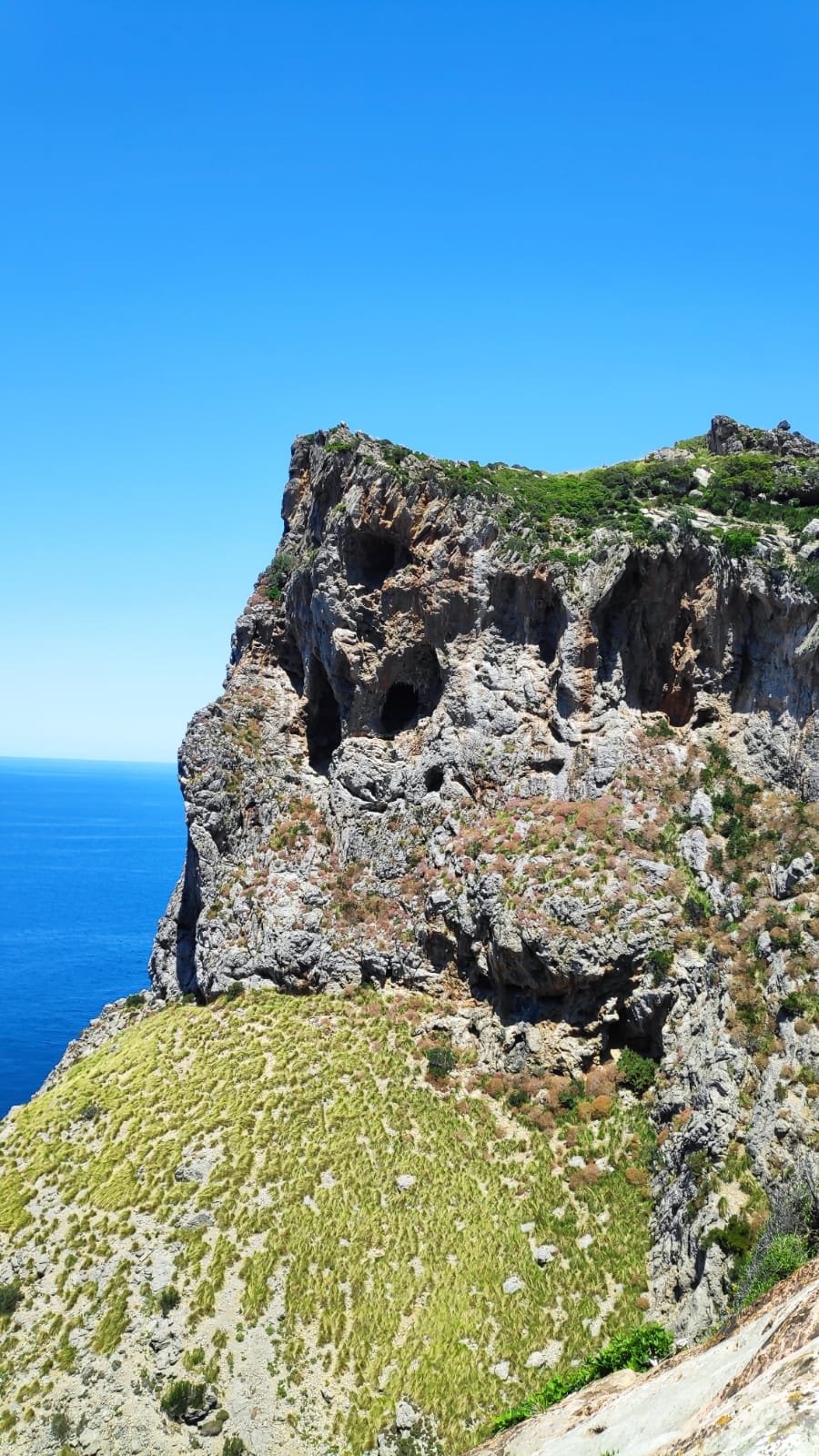 vorbei bis zum verfallen Haus und dann noch bis zu dem Aussichtspunkt, den wir vor Jahren ausgelassen hatten. Wir sehen die kleinen Hexenhöhlen, die nur mit dem Besen zu erreichen sind, denn sie klaffen unerreichbar im Fels.