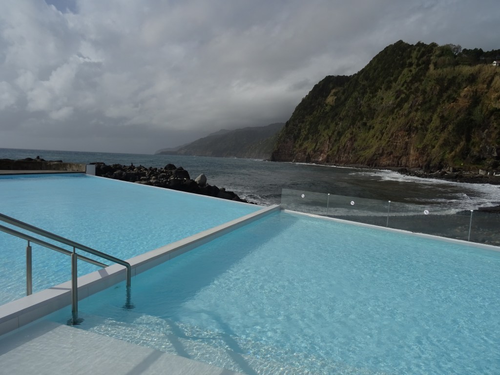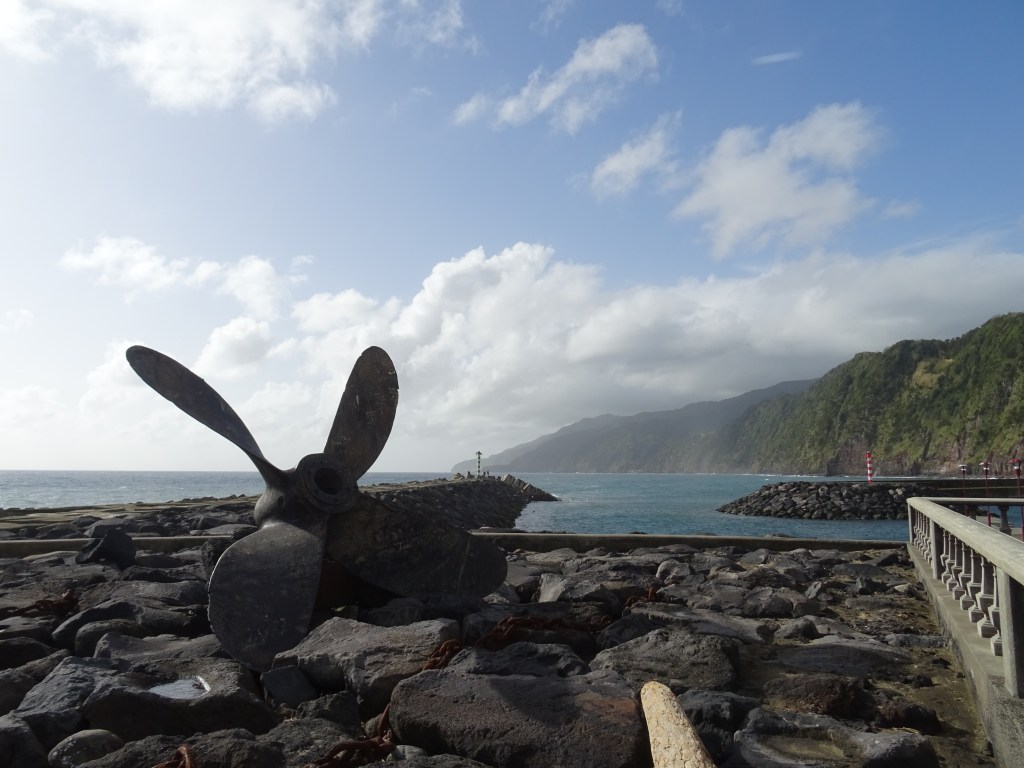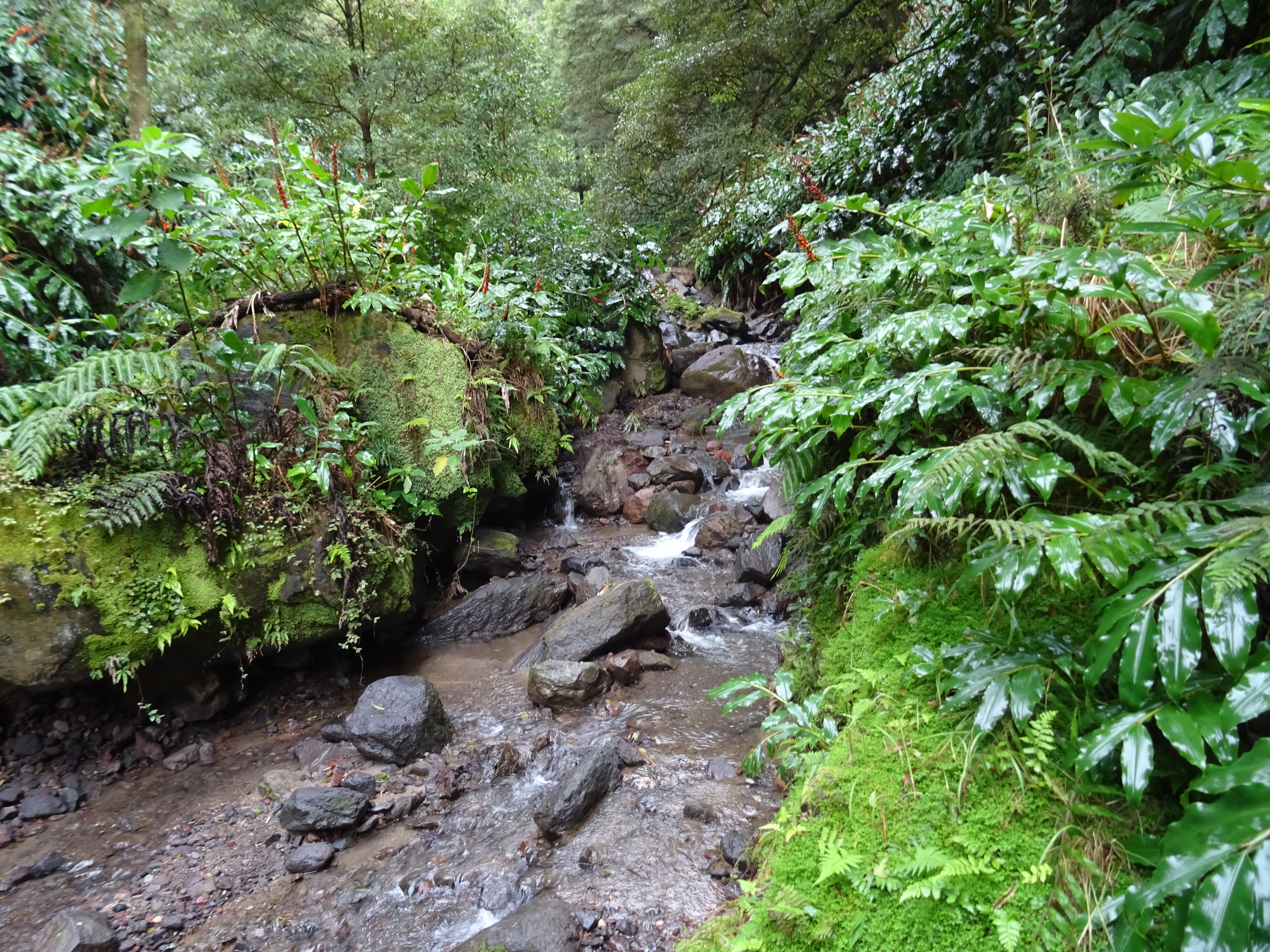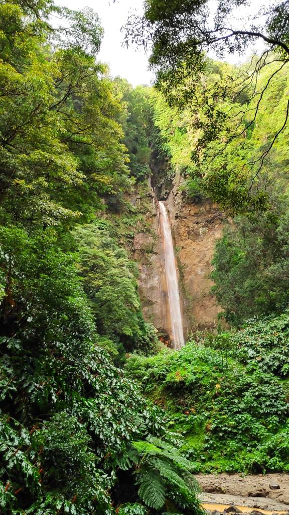Ich schlage den Agriao Trail vor, ein Küstenwanderweg von Riberia Quente nach Povoacao. Ausgerechnet zu der Wanderung zieht Marcus den Reiseführer zur Beratung dazu, der davon abrät, weil der Weg zugewachsen, ungepflegt und aussichtslos ist. Und dann geht die Diskussion los, eigentlich sinnlos, denn am Ende bringt uns der nette Taxifahrer doch zum Startpunkt der 3stündigen Wanderung. Auf dem Weg dorthin zeigt er uns natürlich noch den Wasserfall Cascada da Ribereia Quente.