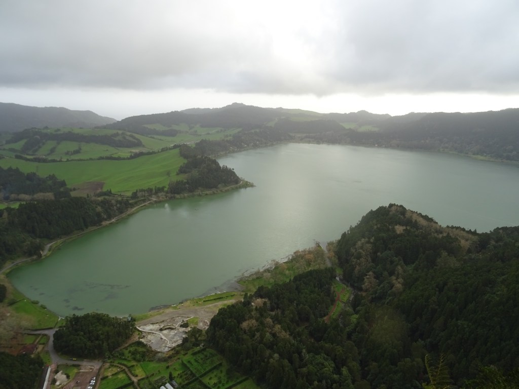 Wir fahren noch zum Aussichtspunk oberhalb des Furnas See und wünschten, dass die Sonne den See mehr ins grüne Licht gerückt hätte.