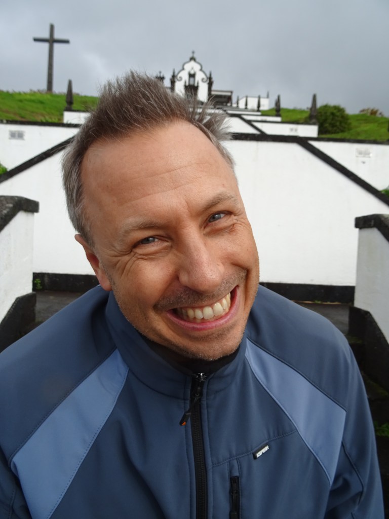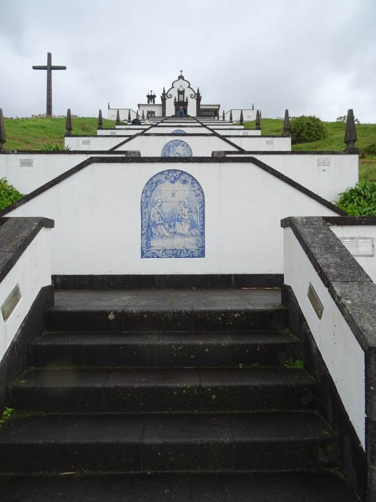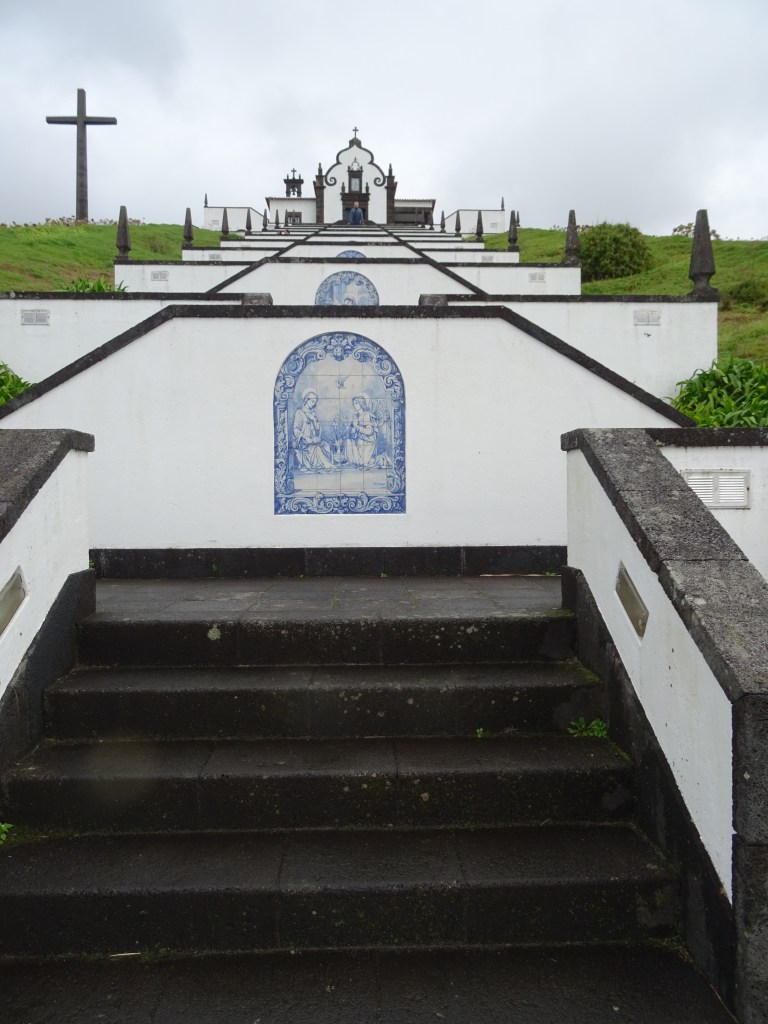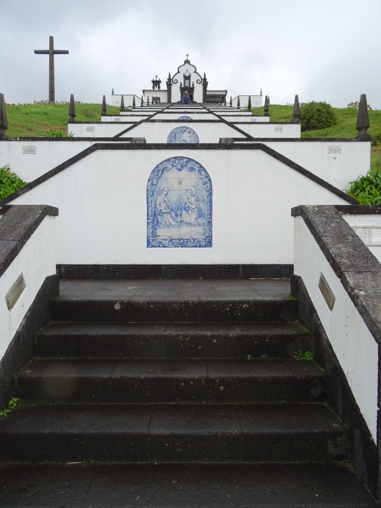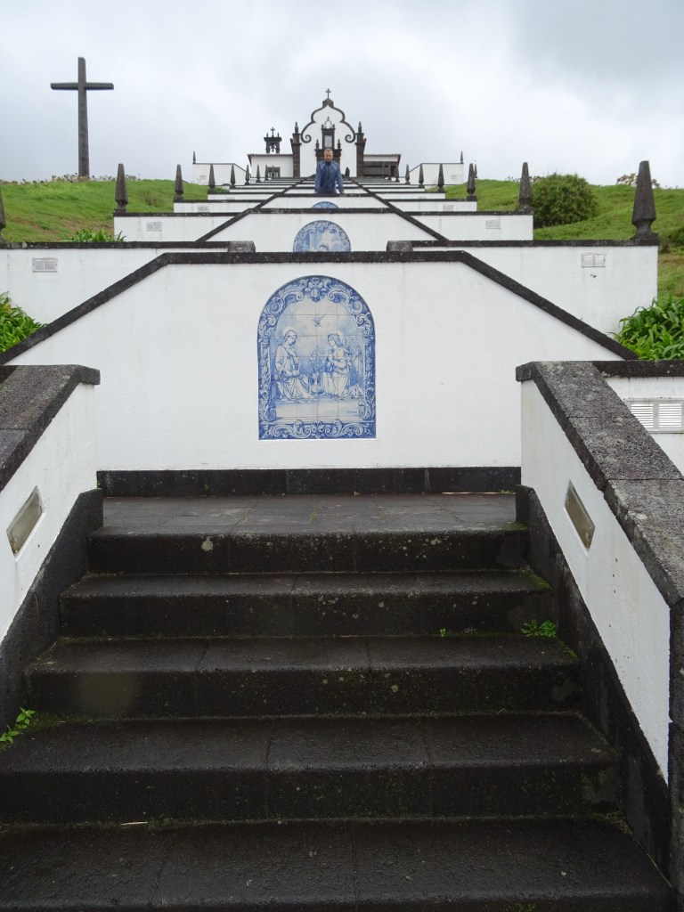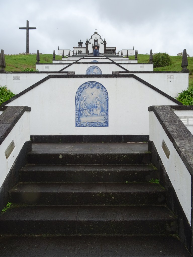 Unser erstes Ziel ist also die berühmte Treppe Ermida de Nossa Senhora Paz und irgendwie scheint sie Marcus doch zu faszinieren, denn ich muss von jedem Treppenabsatz, auf dem er steht ein Foto schießen. Später erklärt er mir, dass er damit ein Daumenkino machen wollte. Aha! Und so sieht es aus das Daumenkino mit dem Hauptdarsteller.