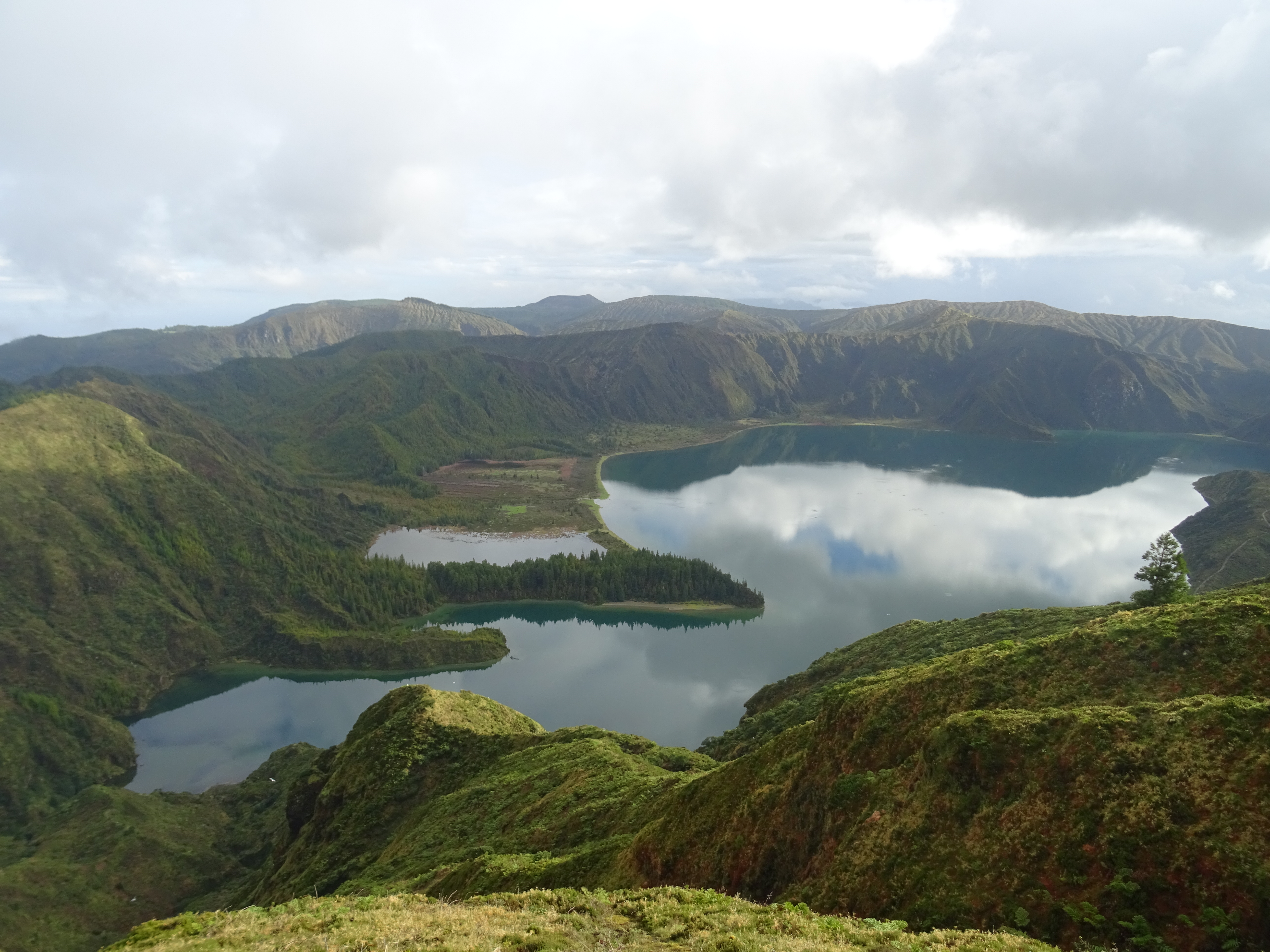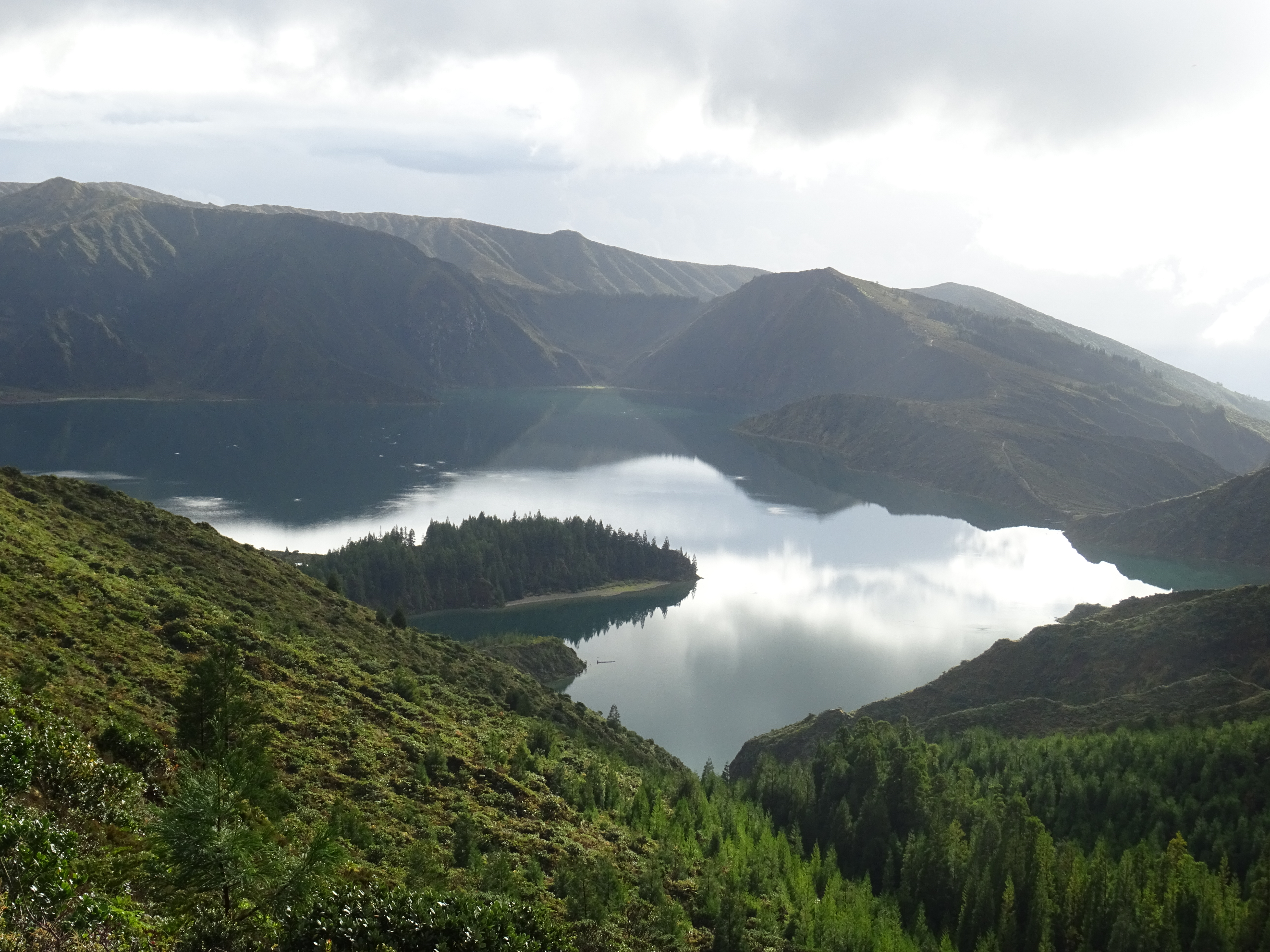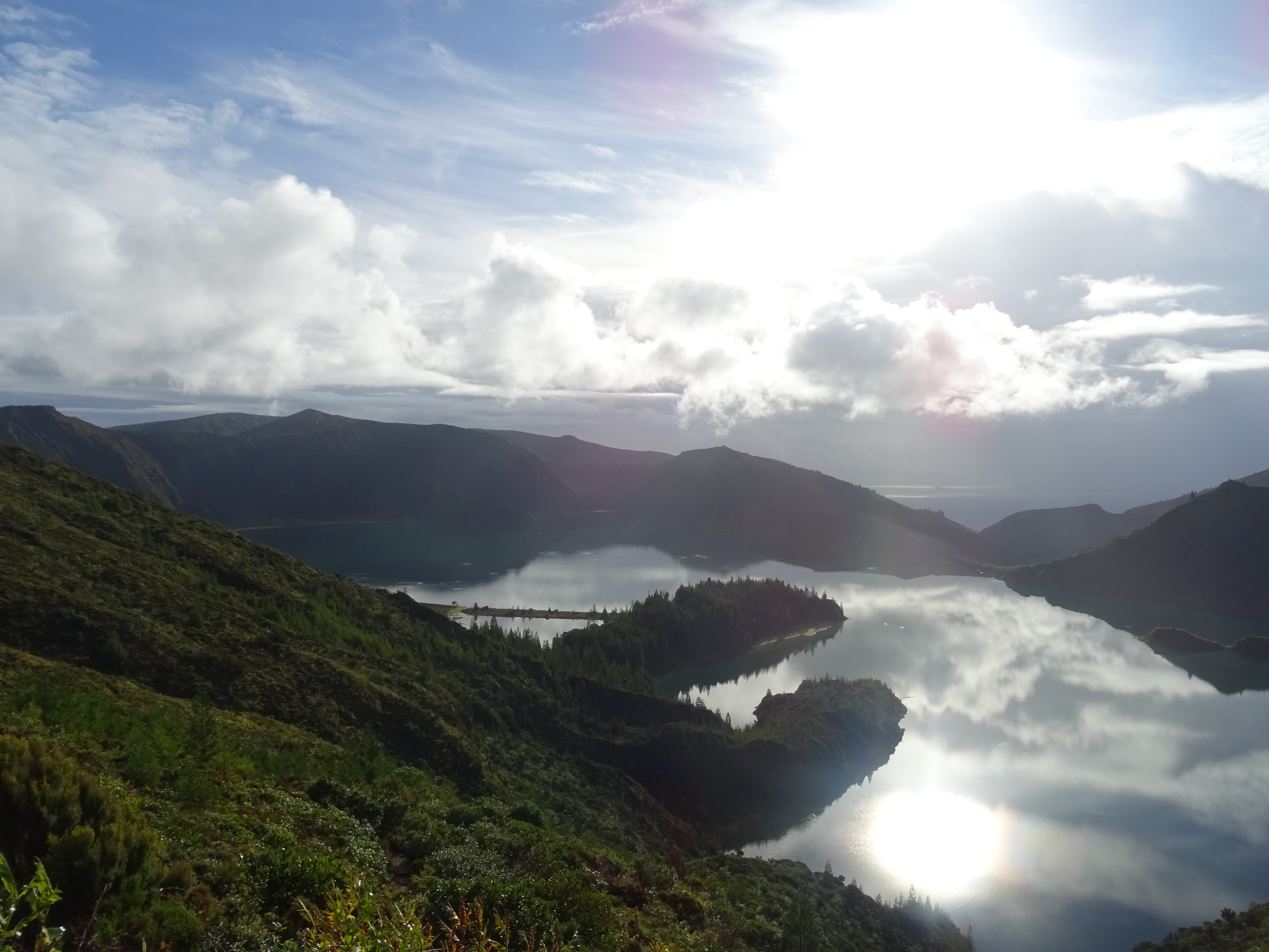 Beschäftigen wir uns lieber mit etwas schönem…Heute müssen wir zu den Highlights nicht weit fahren, der Lagoa do Fogo ist in 30 Minuten Fahrzeit erreicht. Die Sonne spiegelt sich so gemein auf der Oberfläche des Feuersees, dass man kaum hinschauen kann ohne einen Augenschaden davon zu tragen. Wir fahren also mehrere Aussichtspunkte an, um die beste Perspektive zu bekommen.