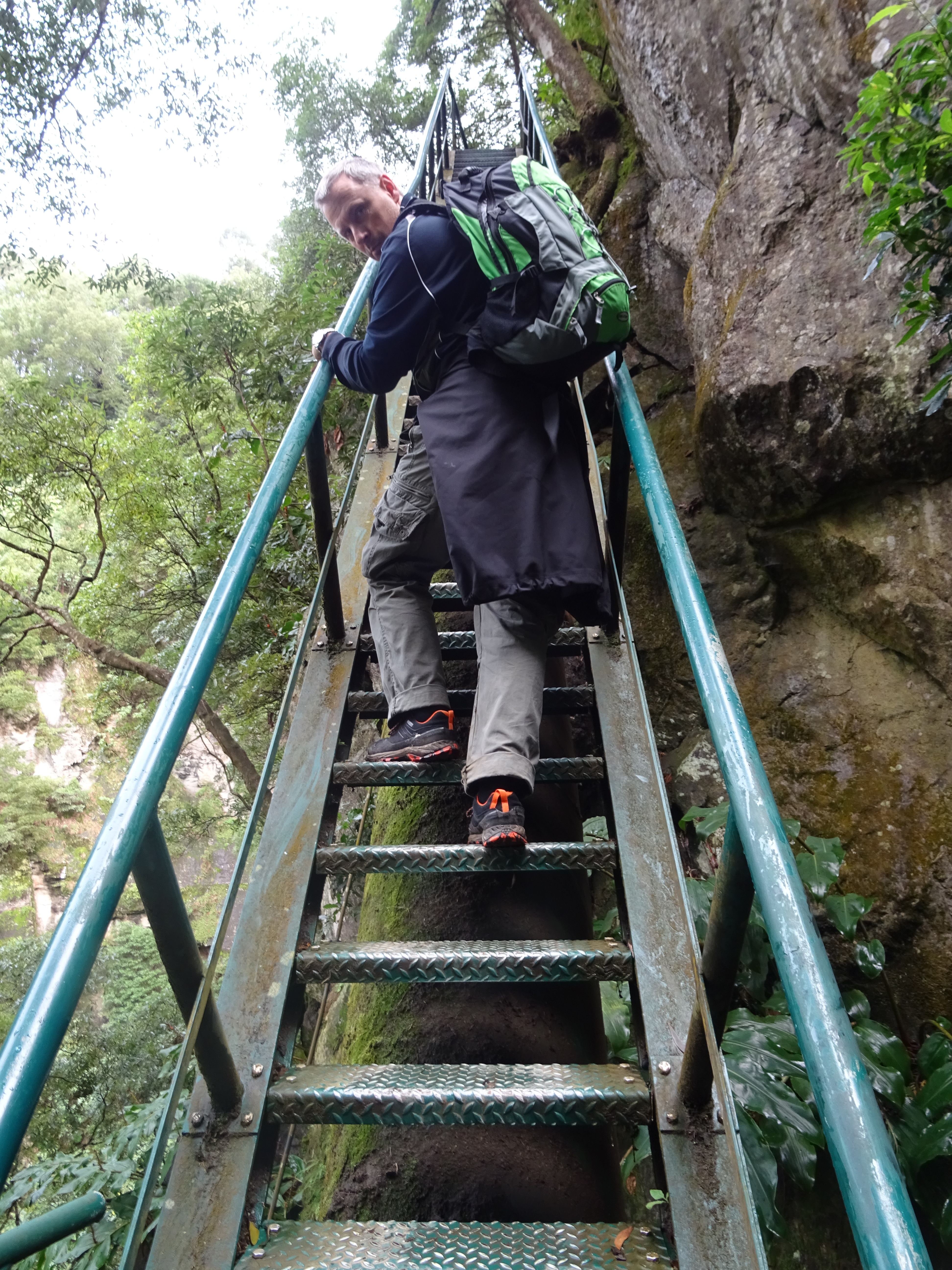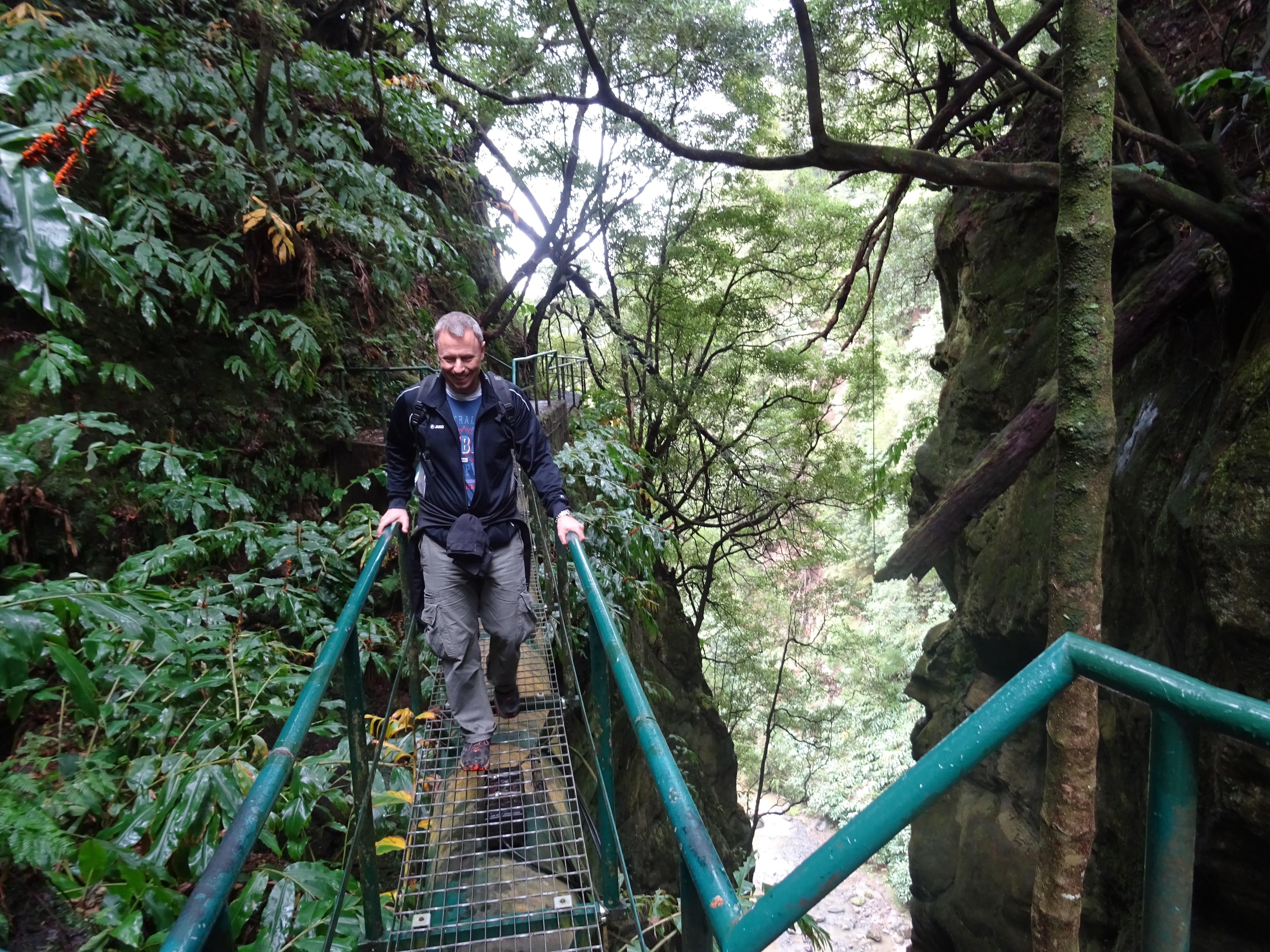 Von hieraus geht eine schöne Wanderung los, für mich ist sie schön, laut Hinweisschildern gefährlich und für Marcus eine kleine Herausforderung, denn man muss schwindelfrei sein. Der Weg führt über Treppen und Stege bis auf den höchsten Punkt des Wasserfalls, das ganze hat nur einen Haken, es sind Gitterplatten, man kann also stets durch sie hindurchschauen.