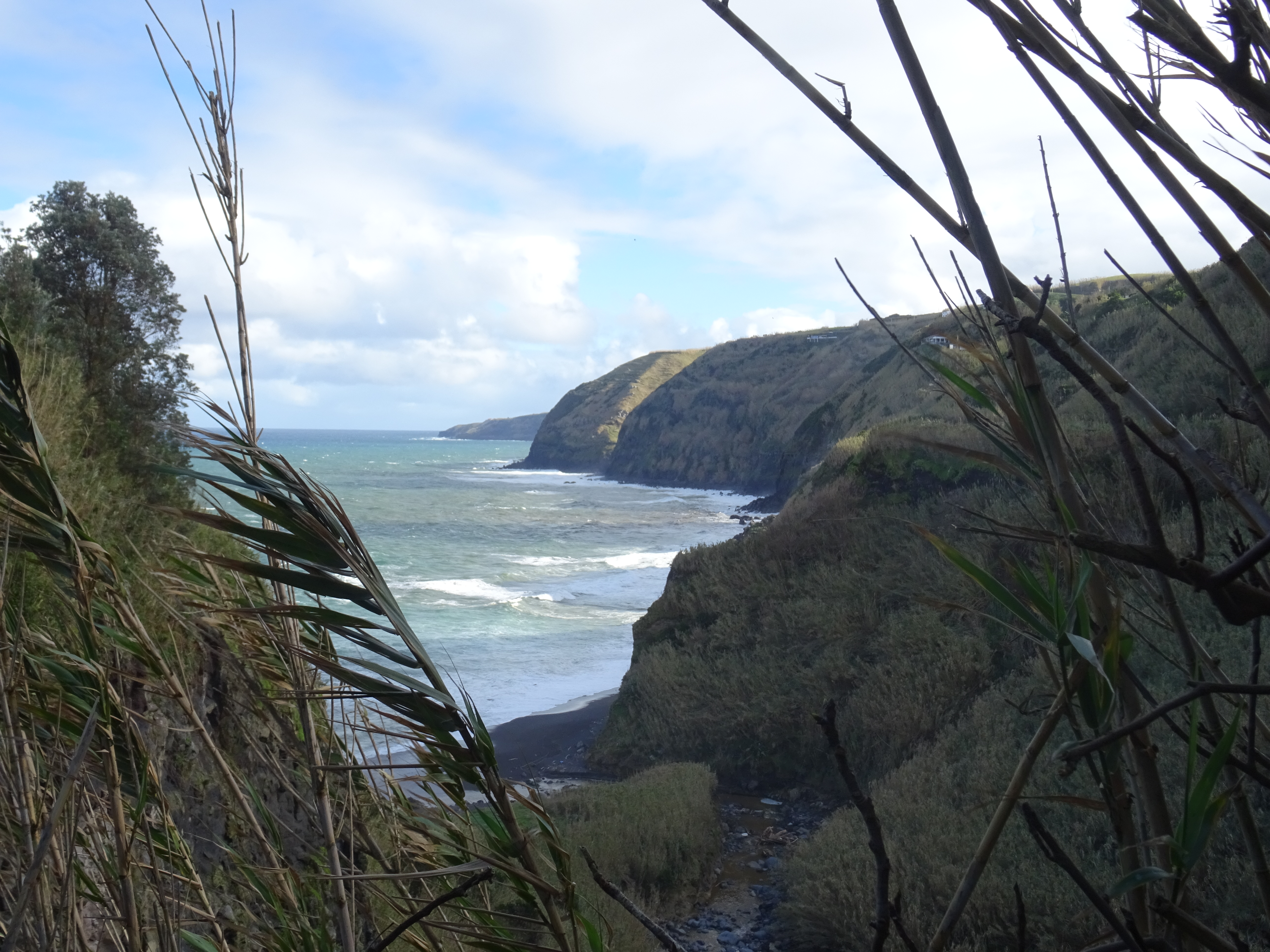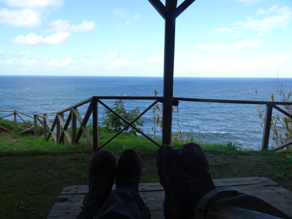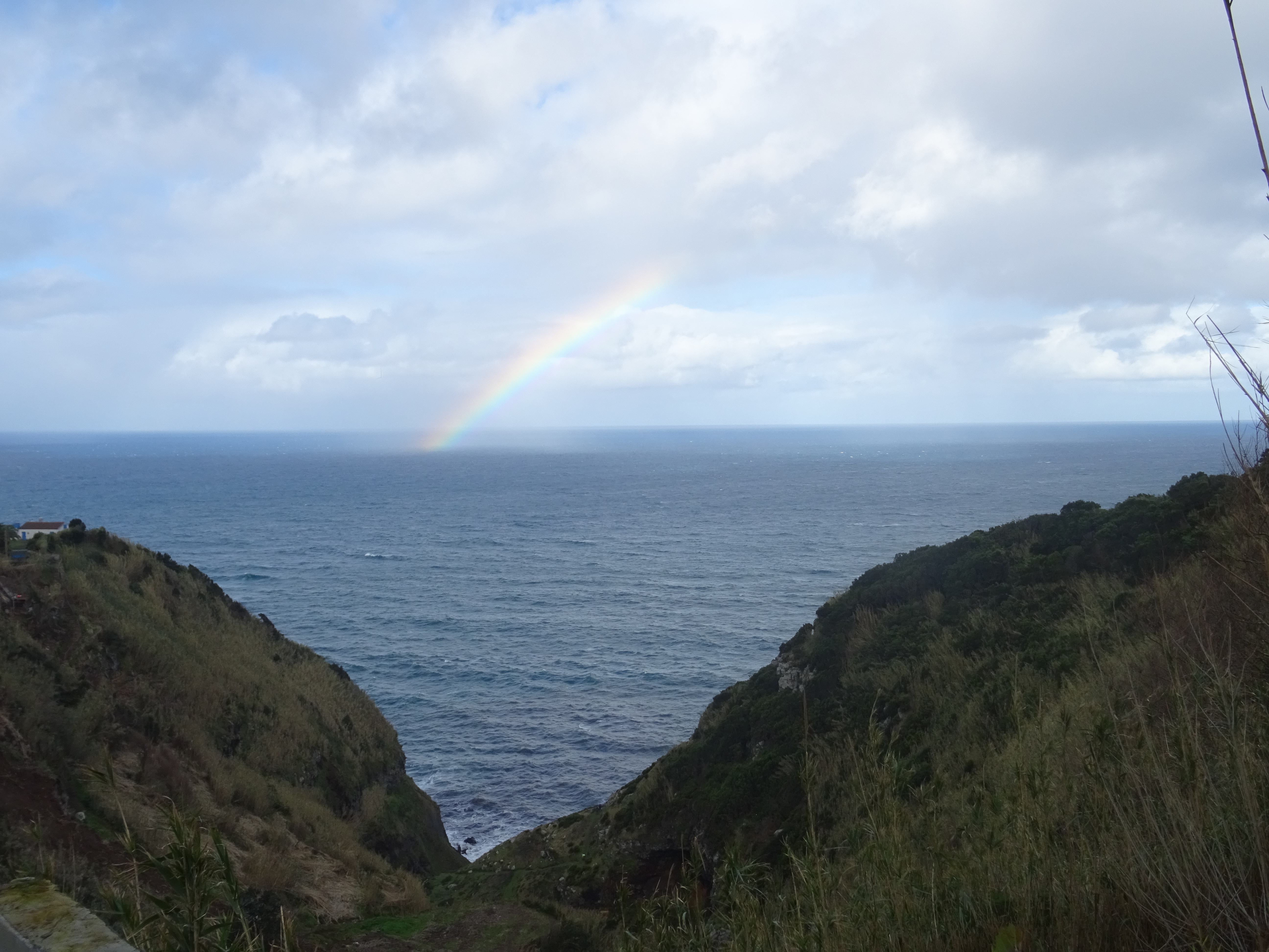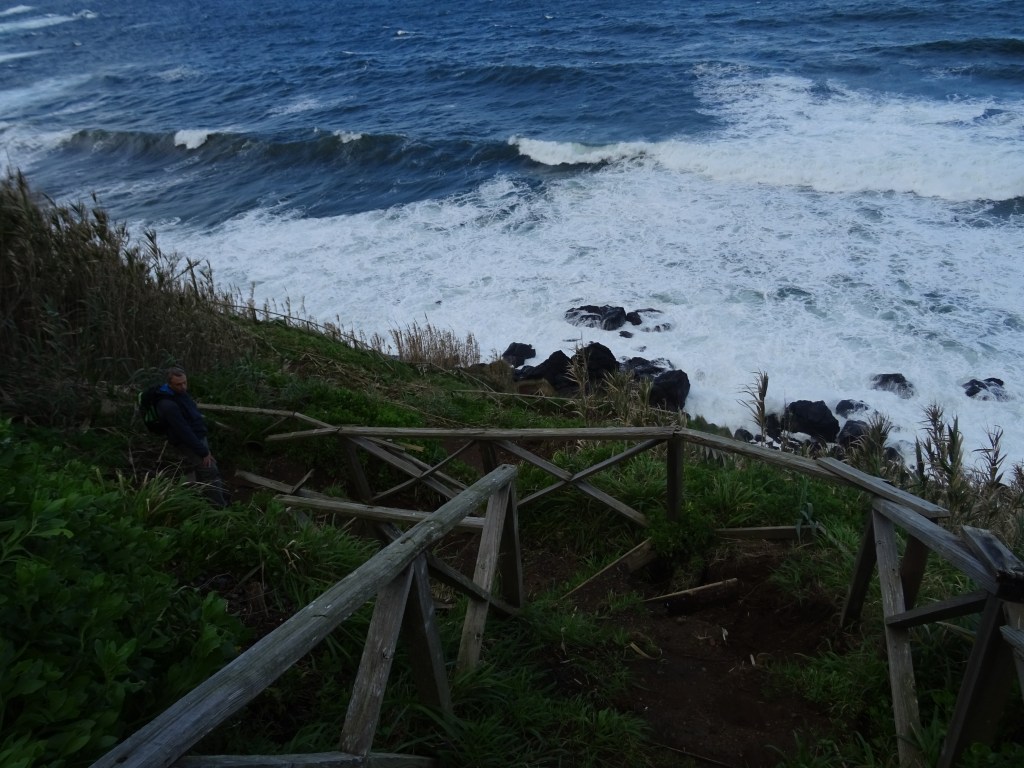 Der Tag beginnt mit einem wunderschönen Regenbogen und er wird sich im Laufe des Tages immer wieder zeigen. Wir wandern an der Küsten entlang von Maia bis zum Strand. Der Weg ist ein Saumpfad, den man sich teilweise mit Kühen teilen muss, dadurch ist er auch etwas mehr als aufgeweicht. Die Ausblicke auf Wasserfälle, Küste und Pflanzen machen den Weg sehr abwechslungsreich.