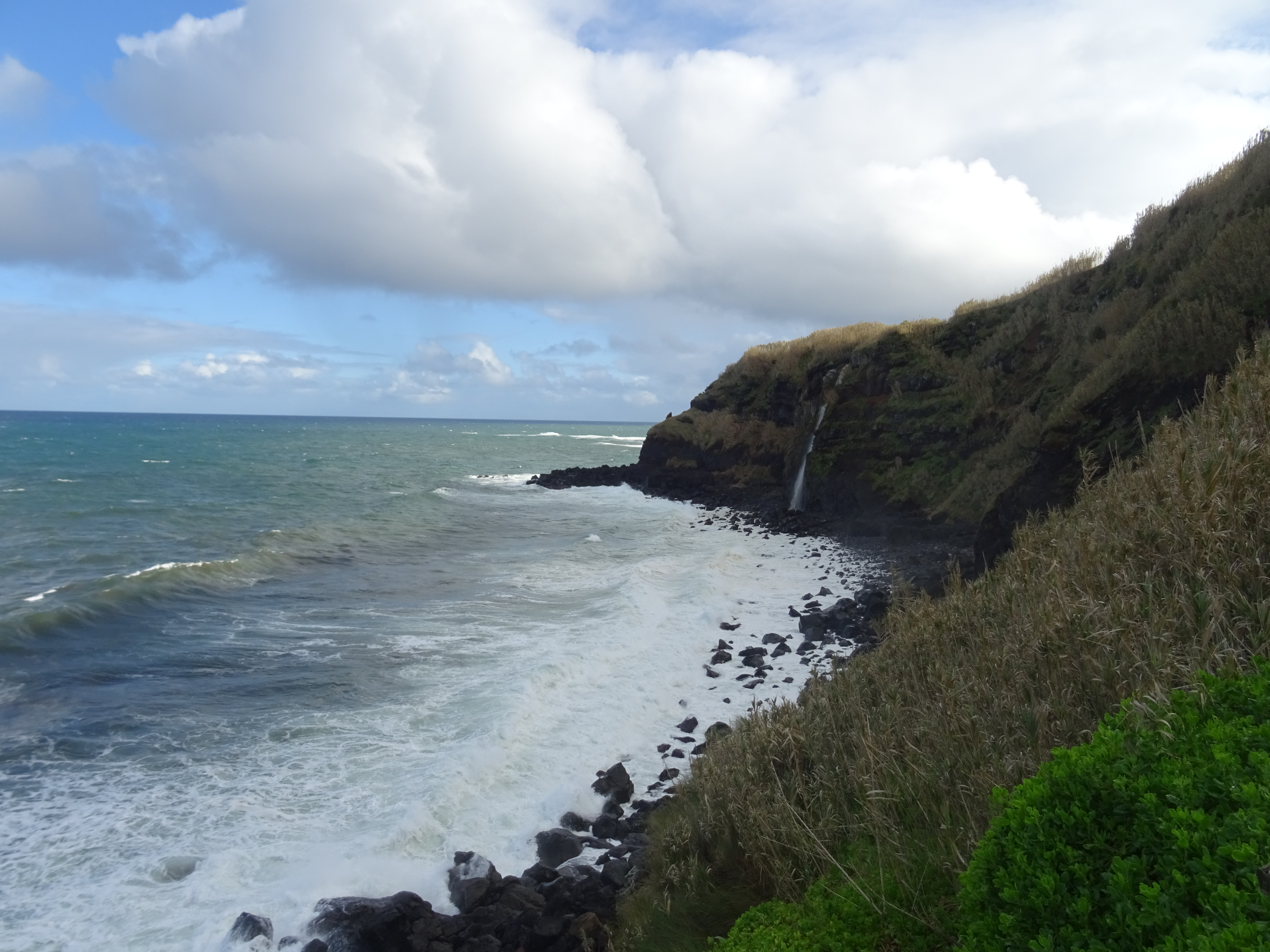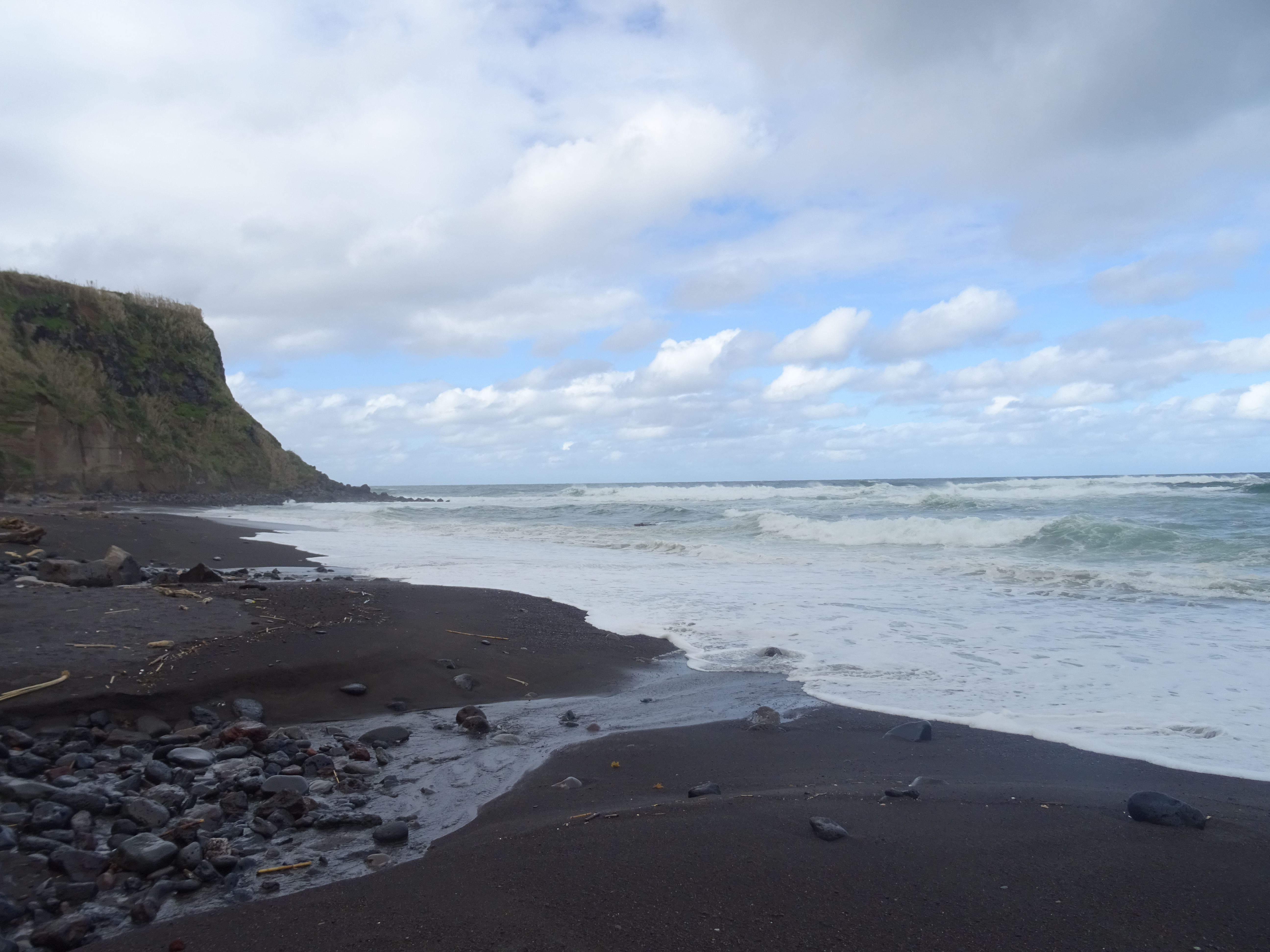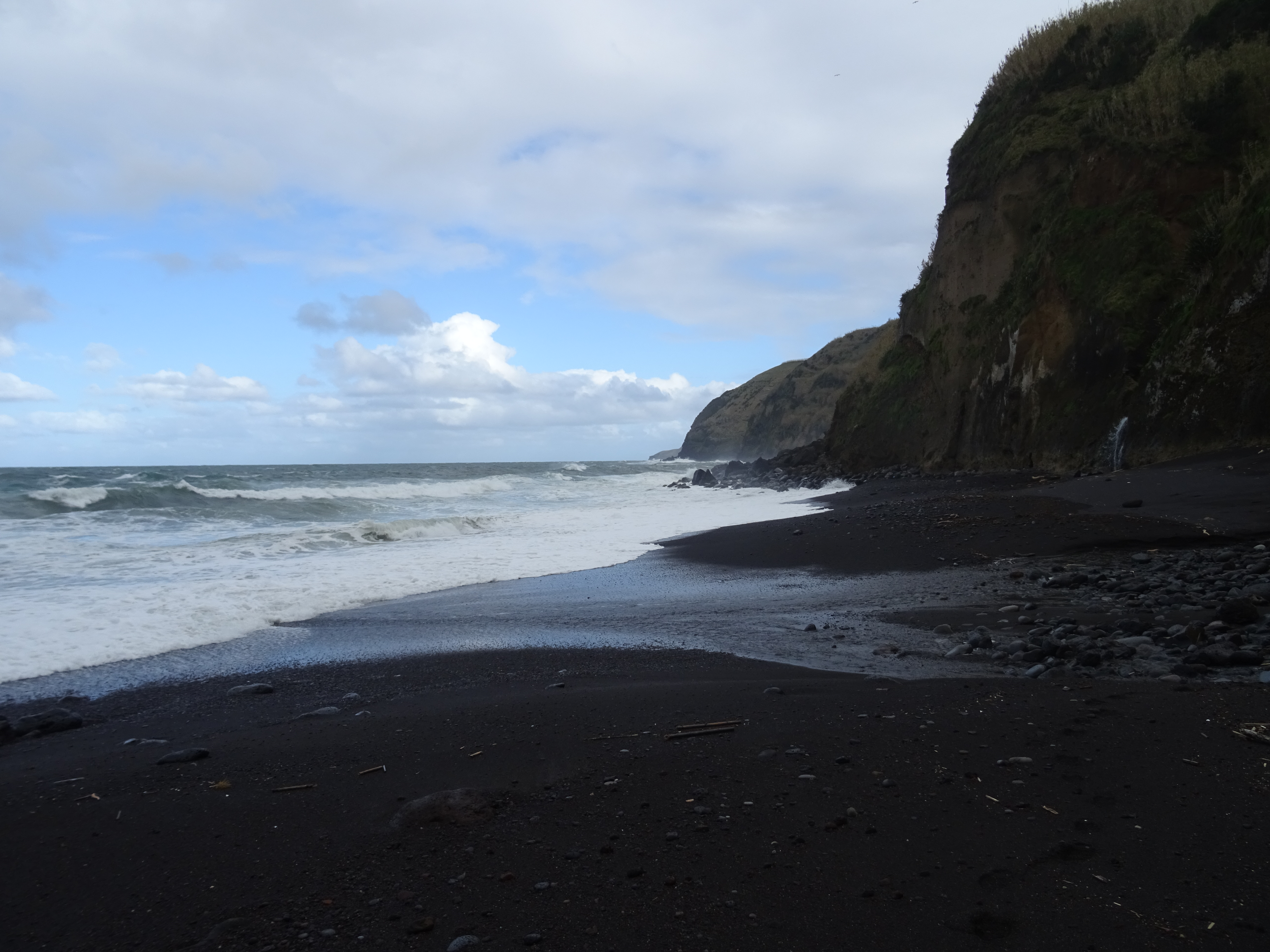 Der Tag beginnt mit einem wunderschönen Regenbogen und er wird sich im Laufe des Tages immer wieder zeigen. Wir wandern an der Küsten entlang von Maia bis zum Strand. Der Weg ist ein Saumpfad, den man sich teilweise mit Kühen teilen muss, dadurch ist er auch etwas mehr als aufgeweicht. Die Ausblicke auf Wasserfälle, Küste und Pflanzen machen den Weg sehr abwechslungsreich.