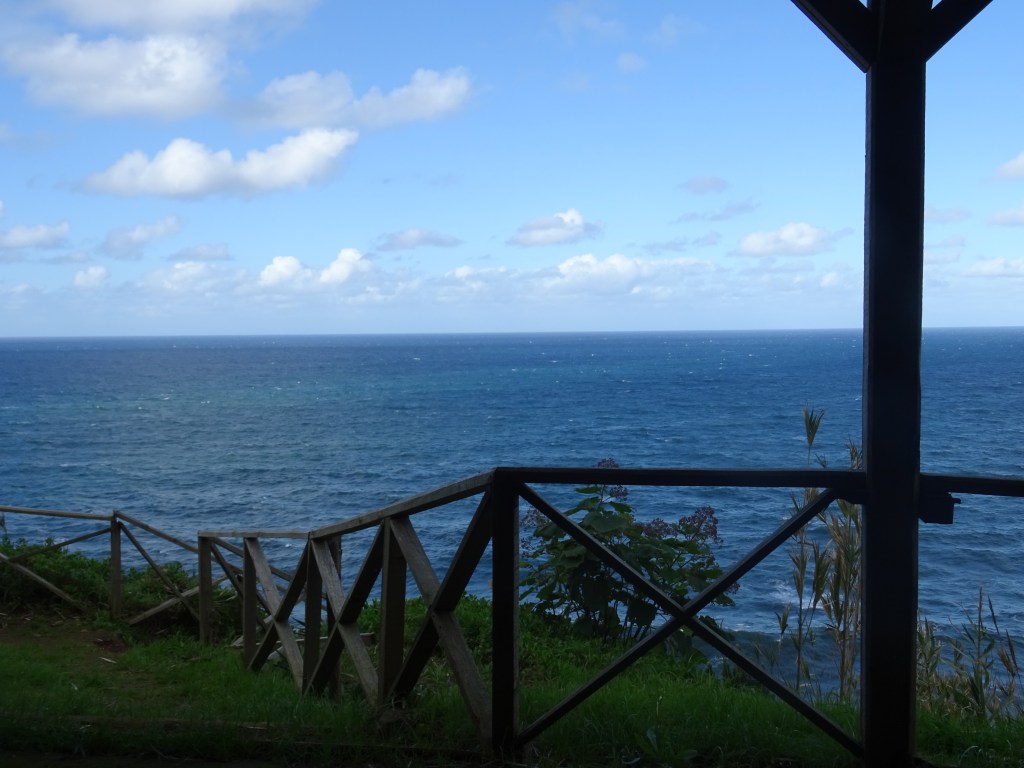 Durch Zufall kommen wir dadurch an die Klippenbar mit lauter Technomusik und super Blick auf den Atlantik. Der einzige Gast ist der Wirt selbst, der so versunken in das Wummern der Bässe ist, dass er tanzend nicht seine echte Kundschaft bemerkt. Räuspern hilft da nicht, beim dritten und lautesten „Hallo?!“ von Marcus besinnt er sich aufs Geschäftliche. Wir bekommen den Cocktail des Hauses und so sind für den Rückweg auch ein wenig mutiger gestimmt.