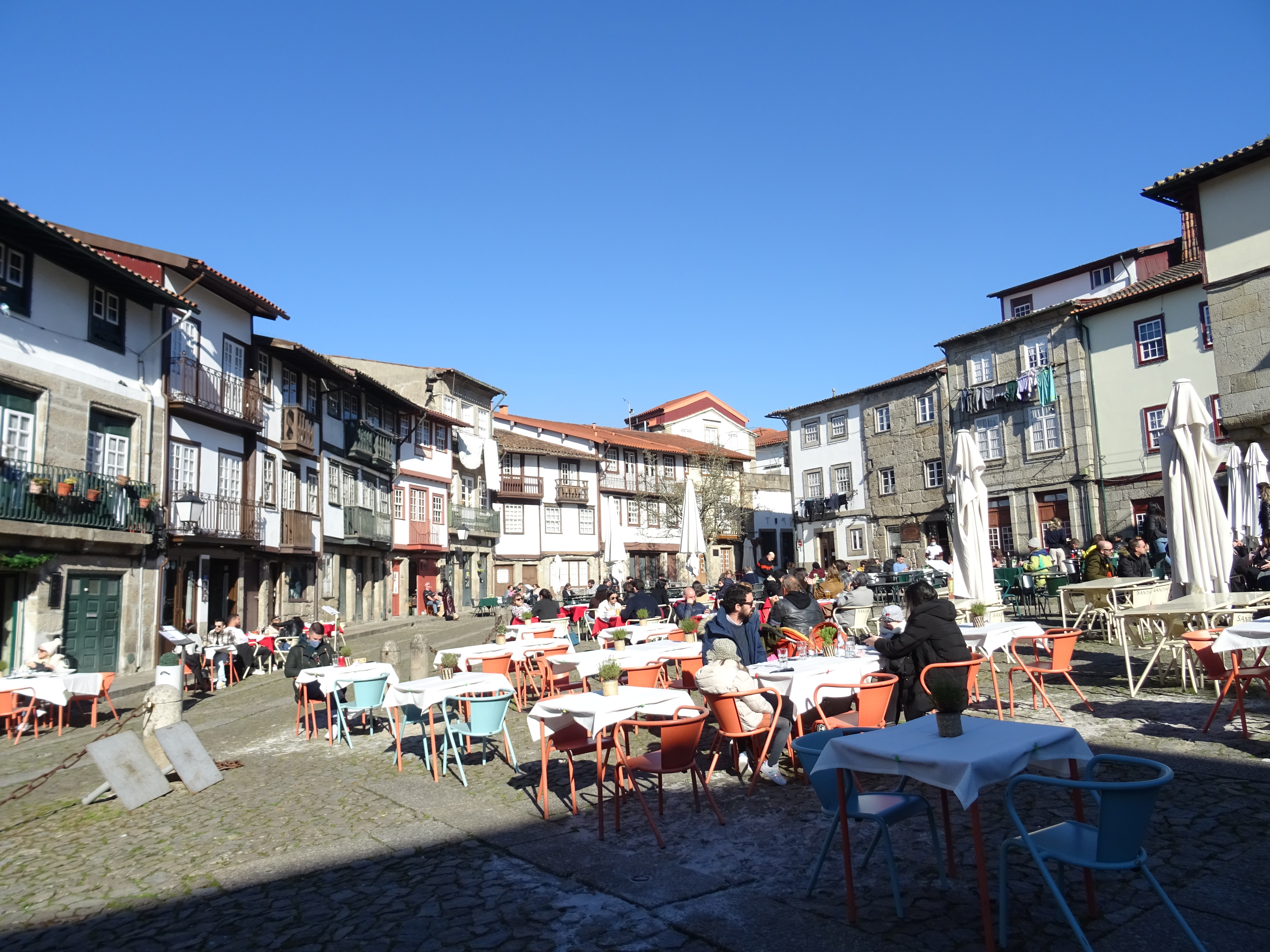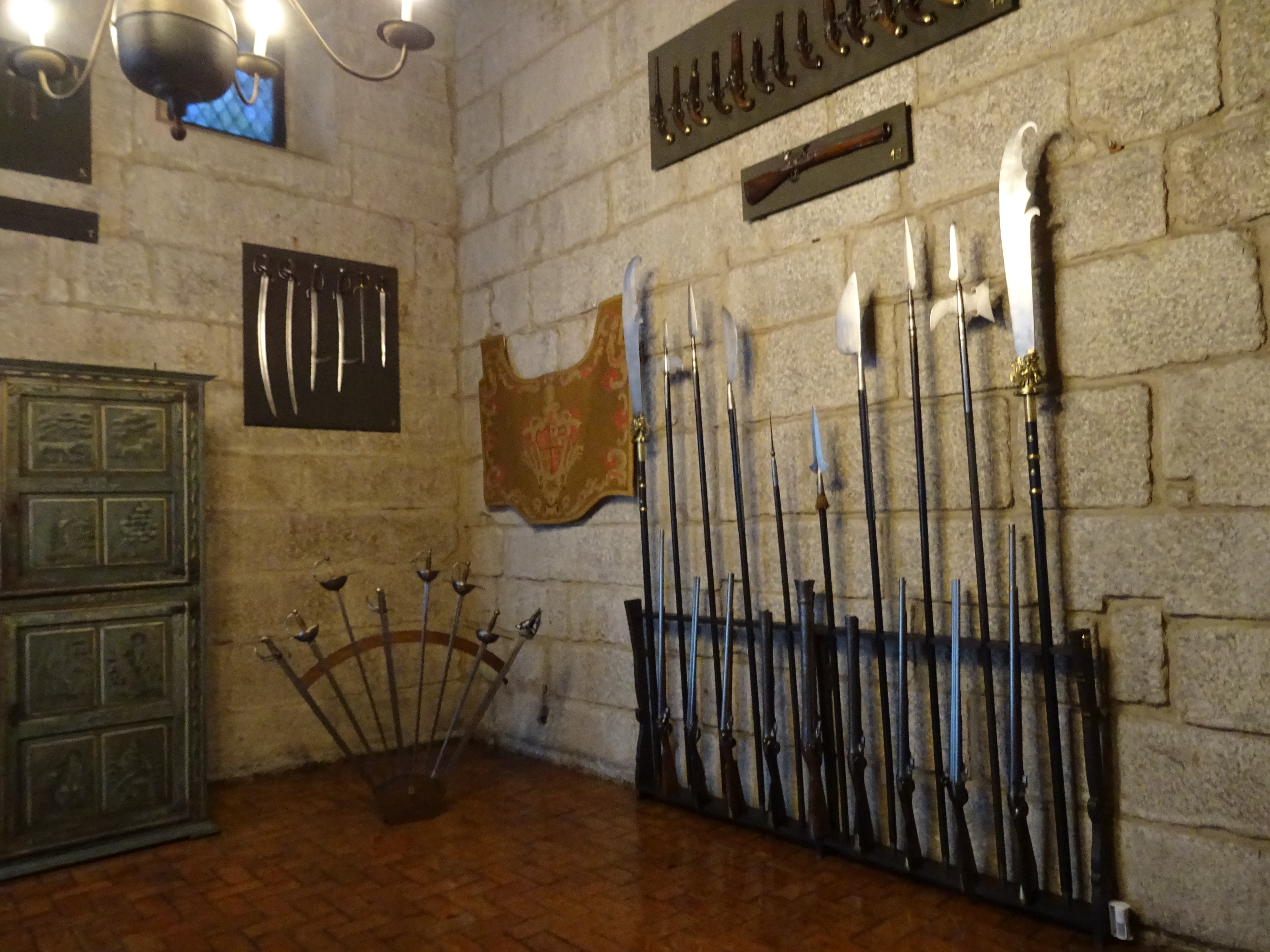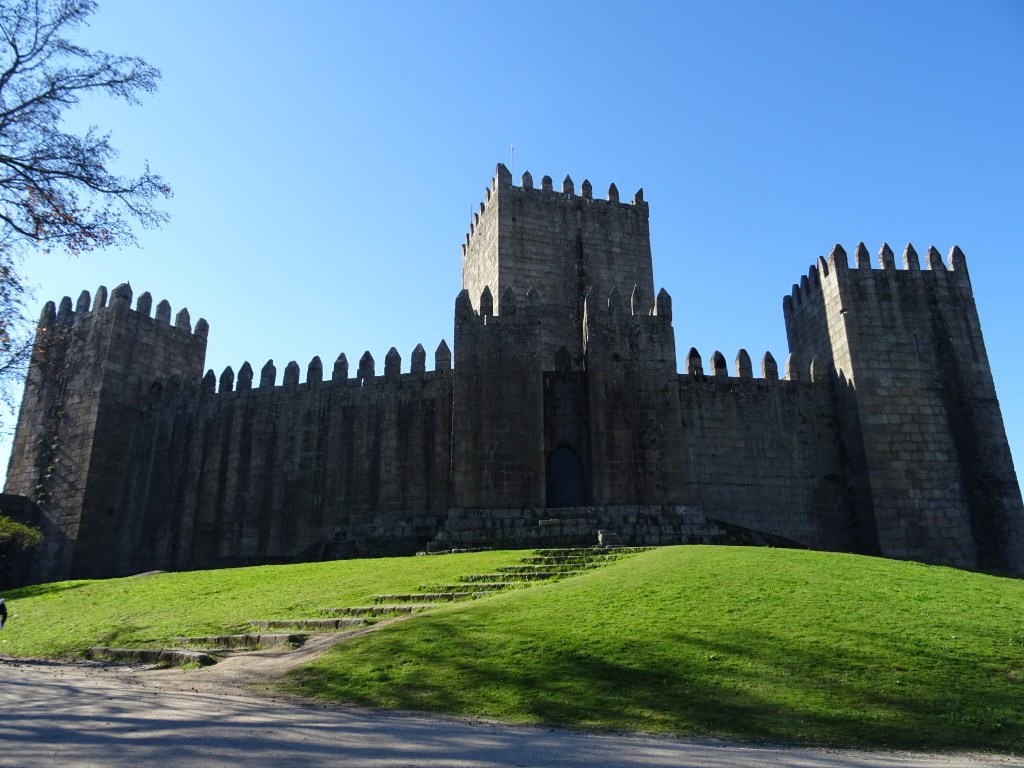28 km weiter ist Guimaraes, ein Städtchen, das den ganzen Tag in Anspruch nimmt, wenn man es richtig macht. Zuerst natürlich das Kastell und den Palast besichtigen und da der Ticketverkauf im Palast ist, fangen wir dort an. In Guimaraes soll der erste König Portugals geboren worden sein, war mal erste Hauptstadt des Landes, 2012 Kulturhauptstadt Europas und die Altstadt ist Unesco Welterbe. Aber zurück zum Palast, der ehemalige Sitz der Herzöge zeigt die großen Räume mit Wandteppichen, elend langen Tafeln und Waffenkammern.