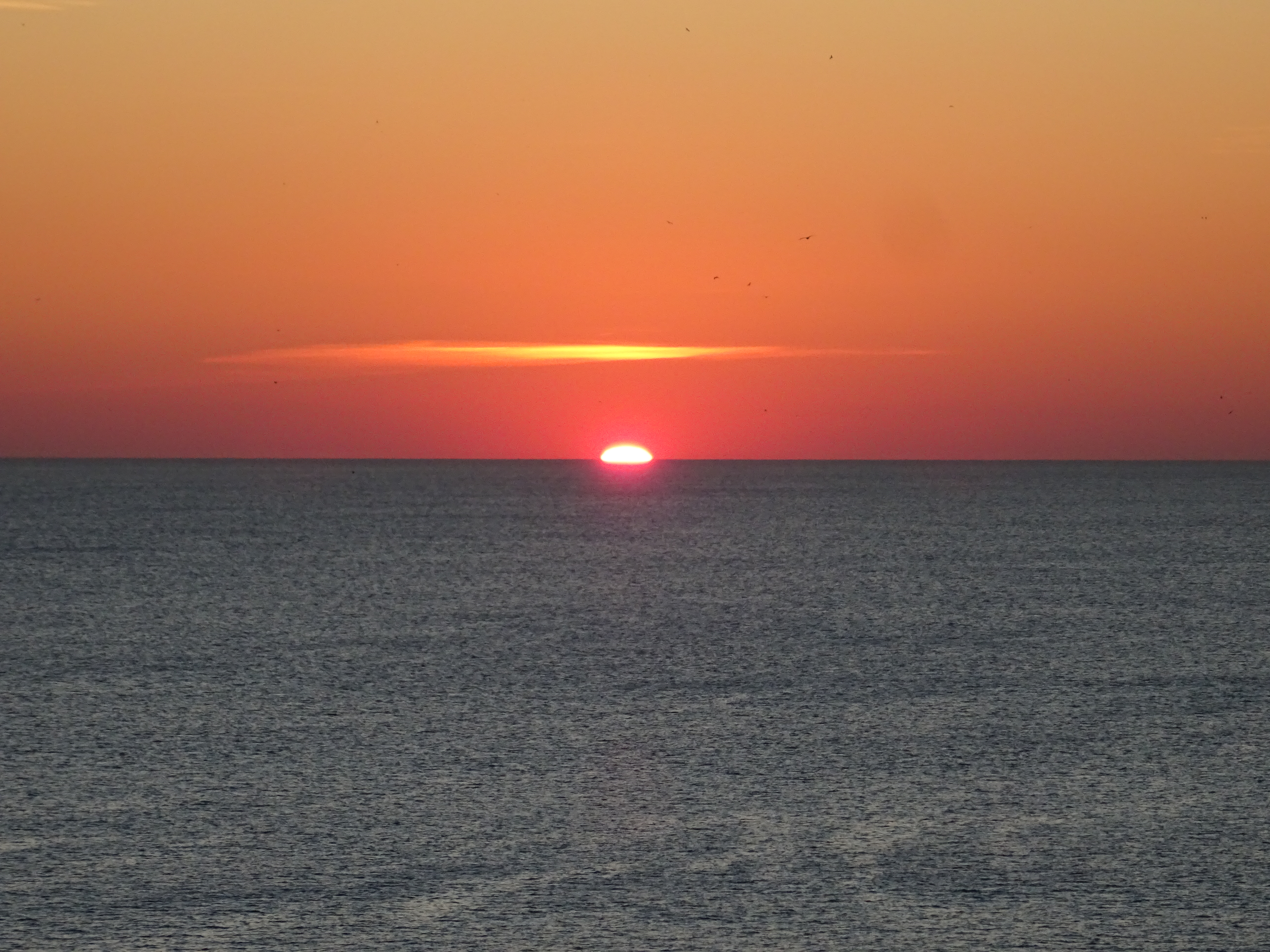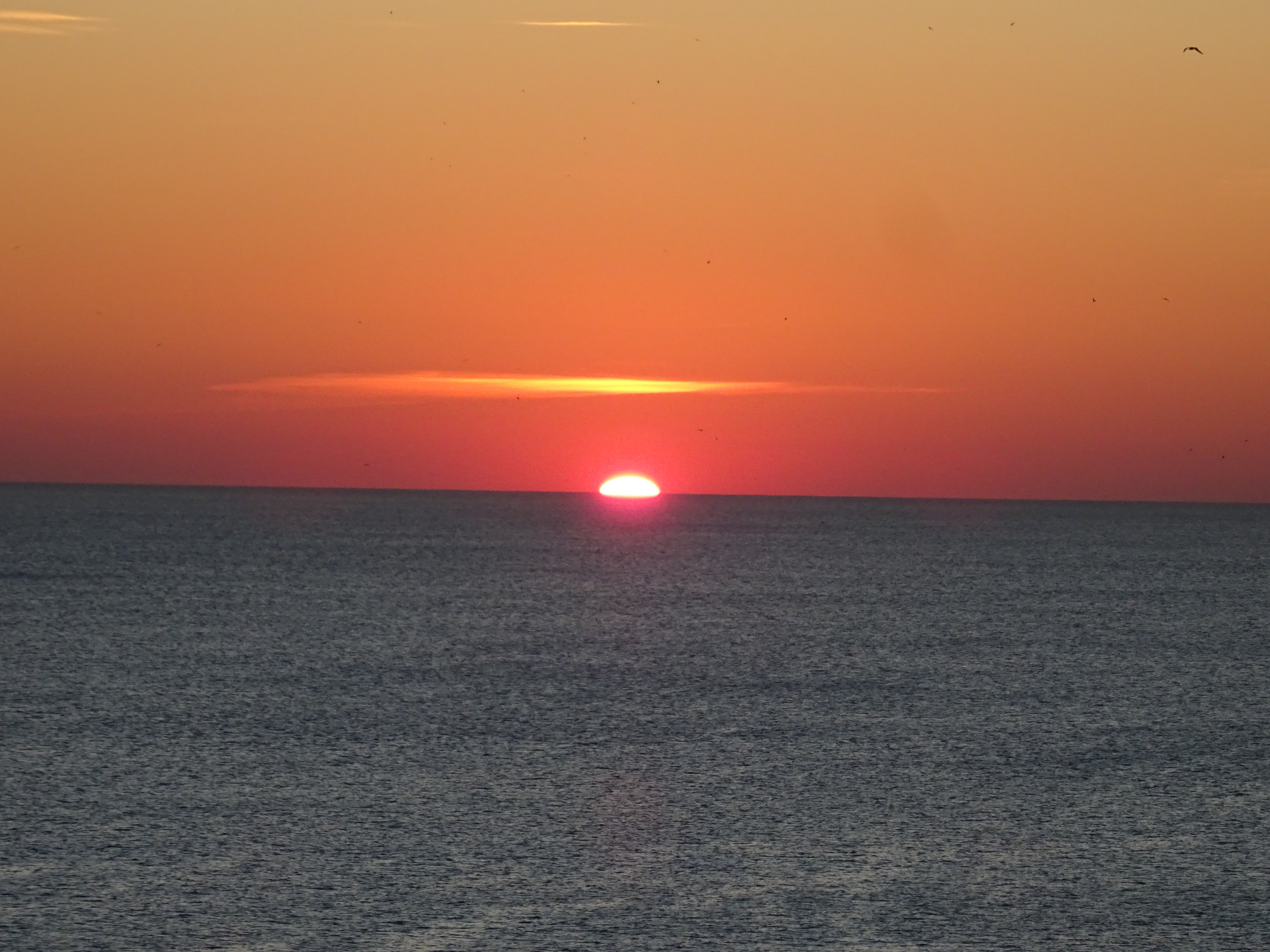 Und dann machen wir noch das einheimische Ding, der Sundowner im Autokino, so fühlt es sich auf jeden Fall an, wenn man auf mehreren Ebenen die Autos auf Parkplätzen stehen sieht, alle mit Blickrichtung zum Atlantik. Es ist ein Traumsonnenuntergang und wir schaffen noch die letzten Sekunden von ihm zu erwischen, aber es hat sich sichtlich gelohnt.