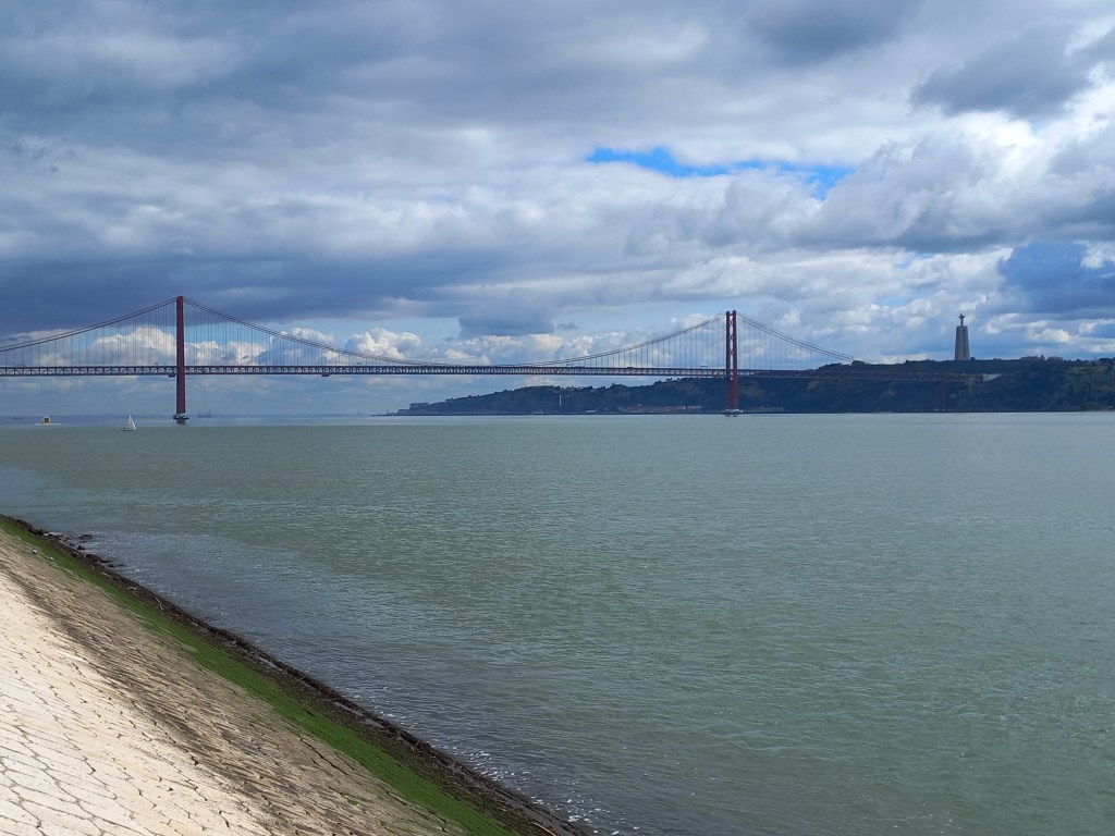 Ich habe die wahnwitzige Idee über die Ponte 25 de Abril mit dem Rad zu fahren, so wie in San Francisco. Allerdings geht das hier nur einmal im Jahr, wenn die Brücke für den Autoverkehr gesperrt ist und man sich als Marathonläuferbegleitfahrzeug tarnt. Also heute gerade nicht.