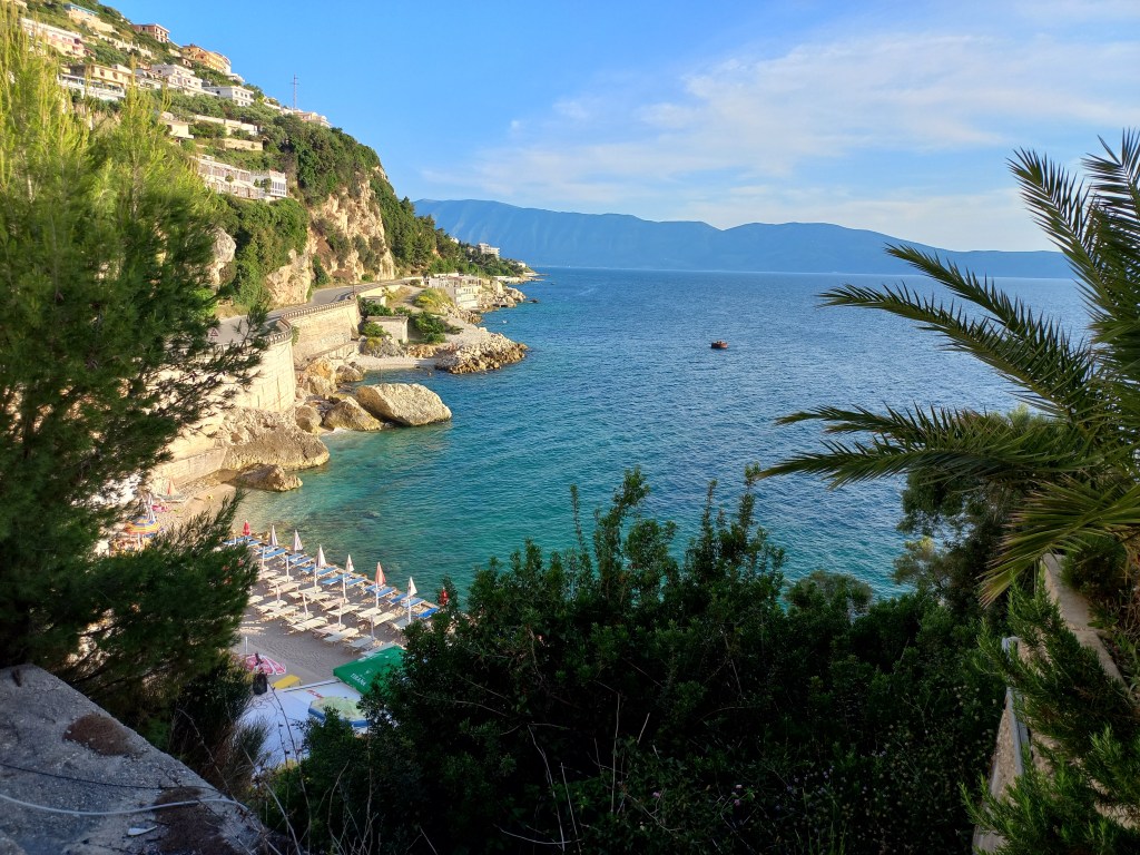 Mit Blick vom Balkon verspricht es schon ein schöner Tag zu werden. Den Meerblickaufpreis inklusive Frühstück kann man sich in Albanien locker leisten, 53 Euro kostet uns das Zimmer .