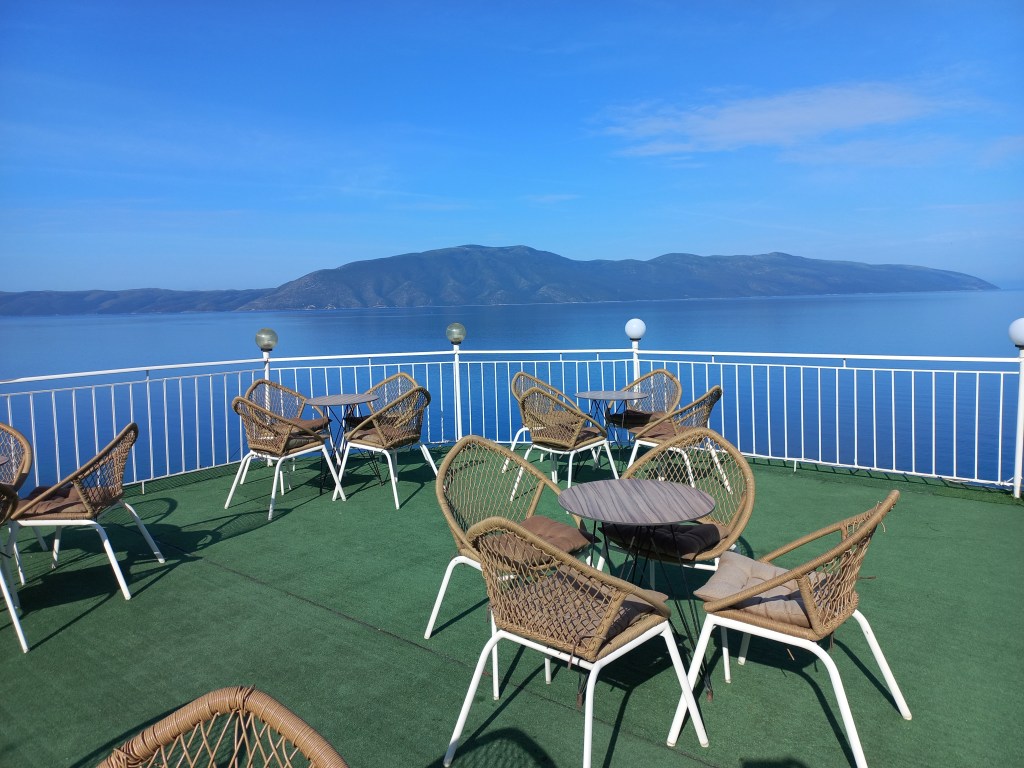 Tschüss Dachterrasse mit super Ausblick, wir müssen weiter nach Süden bis nach Himare.