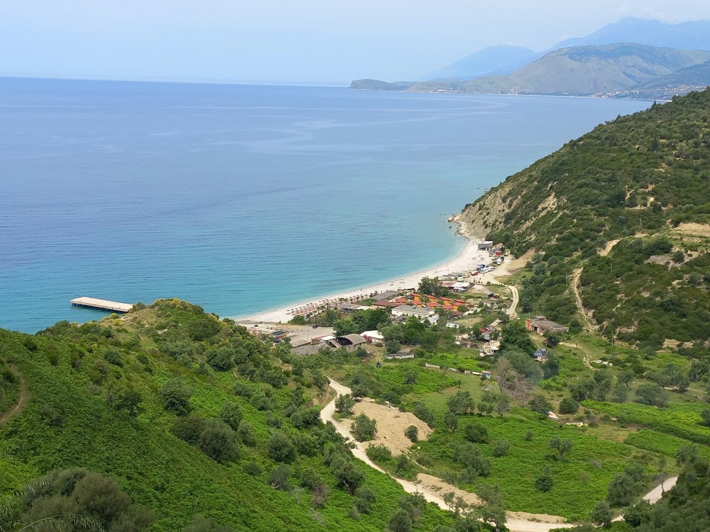 Das Wetter ist heute nicht so sonnig und die Fotos wirken nicht wirklich. Am Panoramablick halten wir an und überlegen, ob Sarande einen Zwischenstopp wert ist.