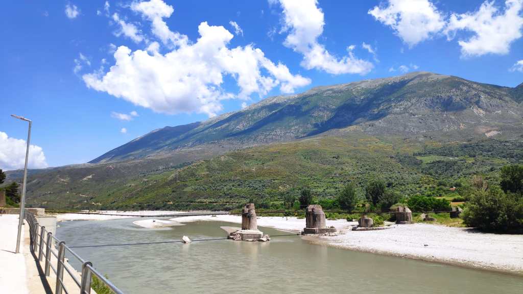 Marcus spielt inzwischen Fahrer und Reiseführer für mich gleichzeitig: „der Fluss neben uns heisst Vjosa und fließt allein durch Albanien 190 km uneingeschränkt. Er ist der letzte echte Wildfluss Europas, dem man einfach seinen Lauf lässt. Am schönsten kann man ihn in Tepelena fotografieren.