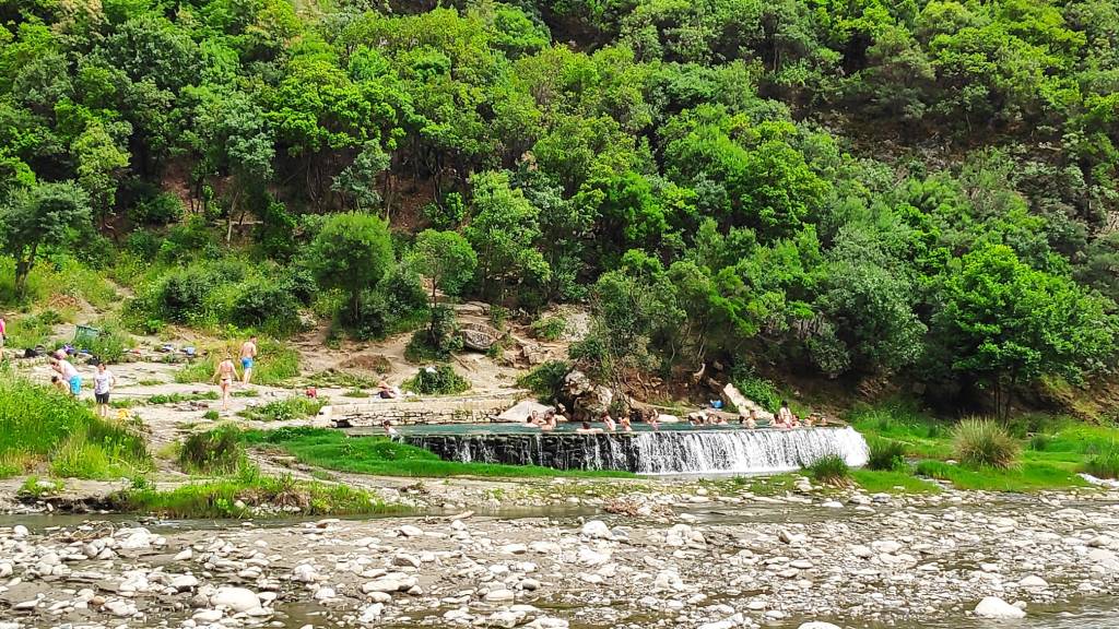 Der Canyon Lengarica hat nicht nur die pittoreske Steinbrücke, sondern auch noch eine Vielzahl von Thermalquellen. Da weiß man gar nicht, wo man anfangen soll.